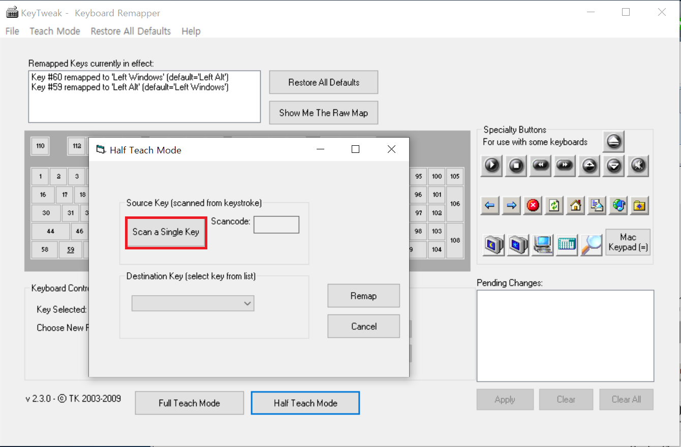 4. 변경원하는 키 선택 (left window)