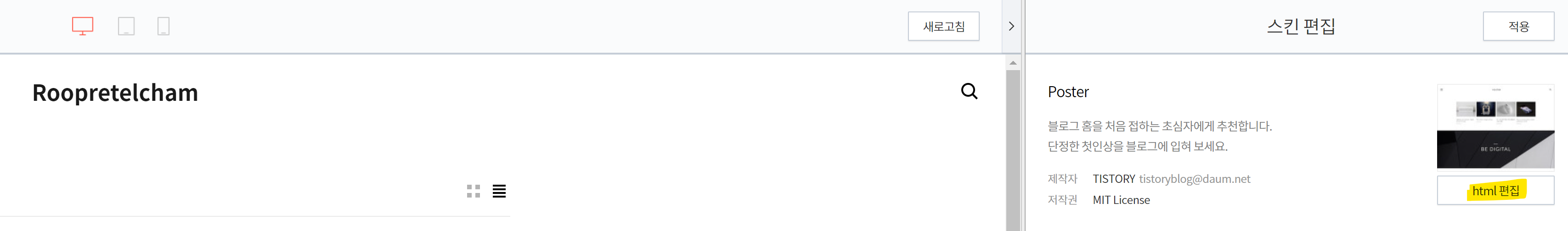4. 우측 상단의 html 편집을 클릭한다