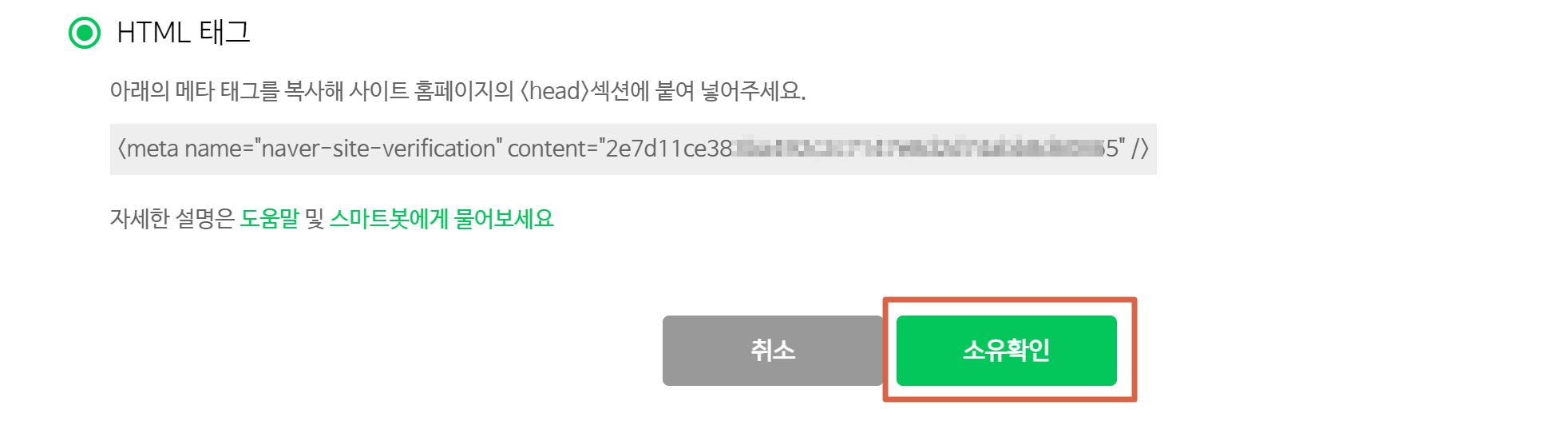 6. 다시 네이버 서치어드바이저로 돌아와서 HTML 소유확인을 누르고 완료!