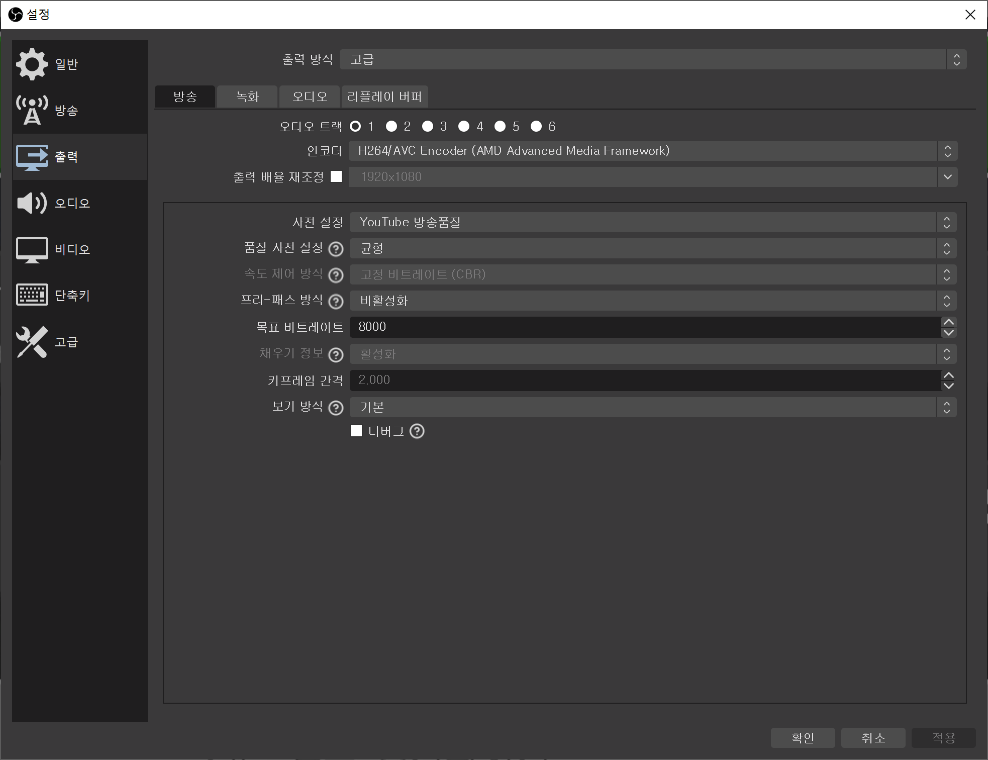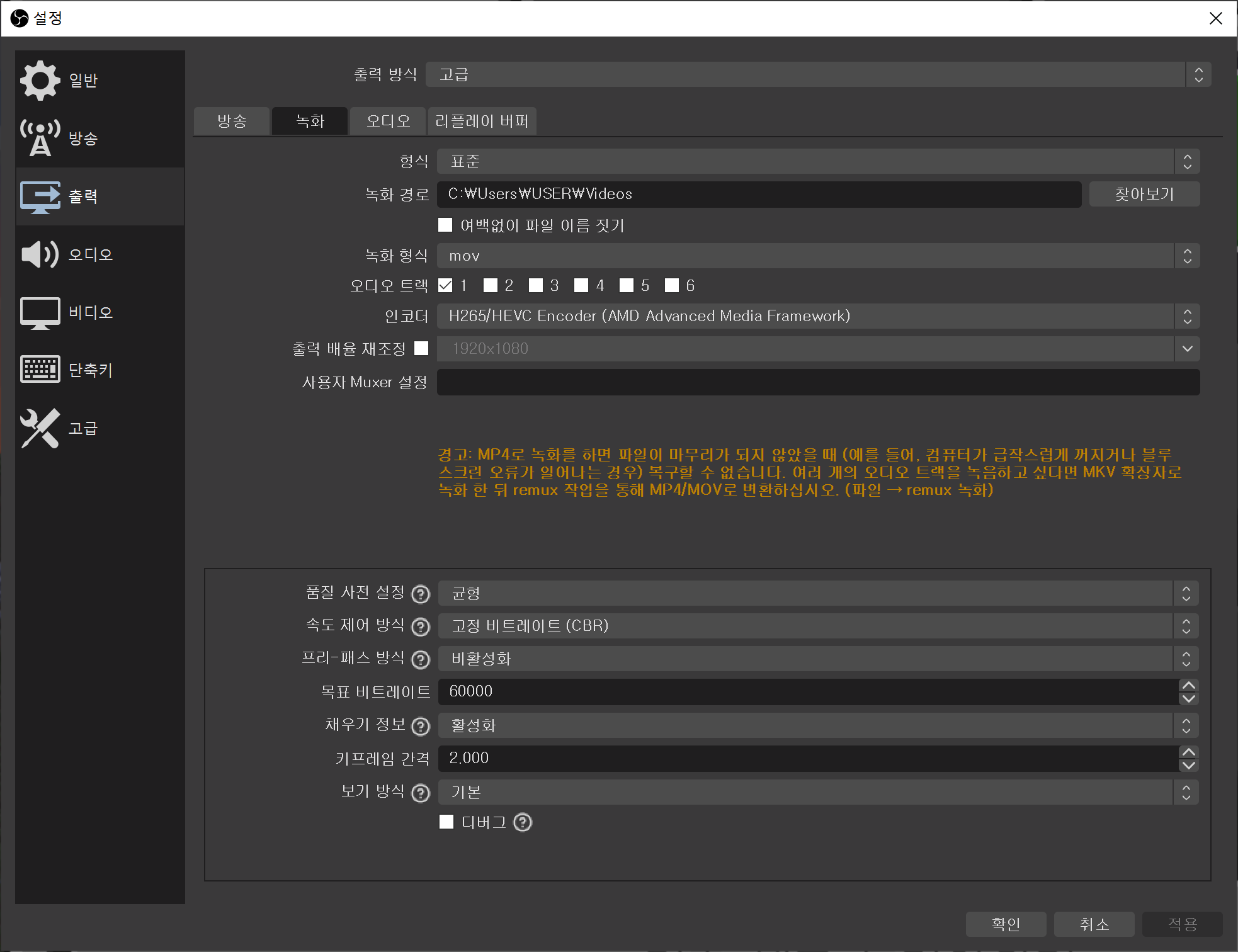 녹화는 방송(스트리밍)이 아닌 녹화본을 가지고 영상 편집하여 올리는 분들에게 필요한 설정으로