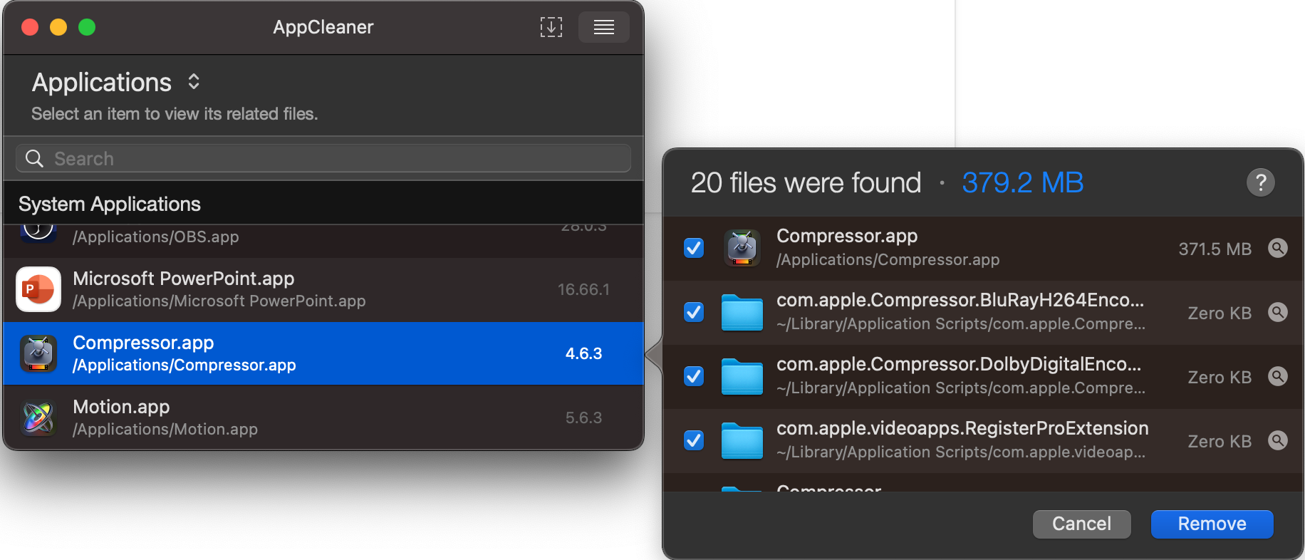 삭제하고자 하는 앱을 클릭하면 관련 파일을 찾아주고