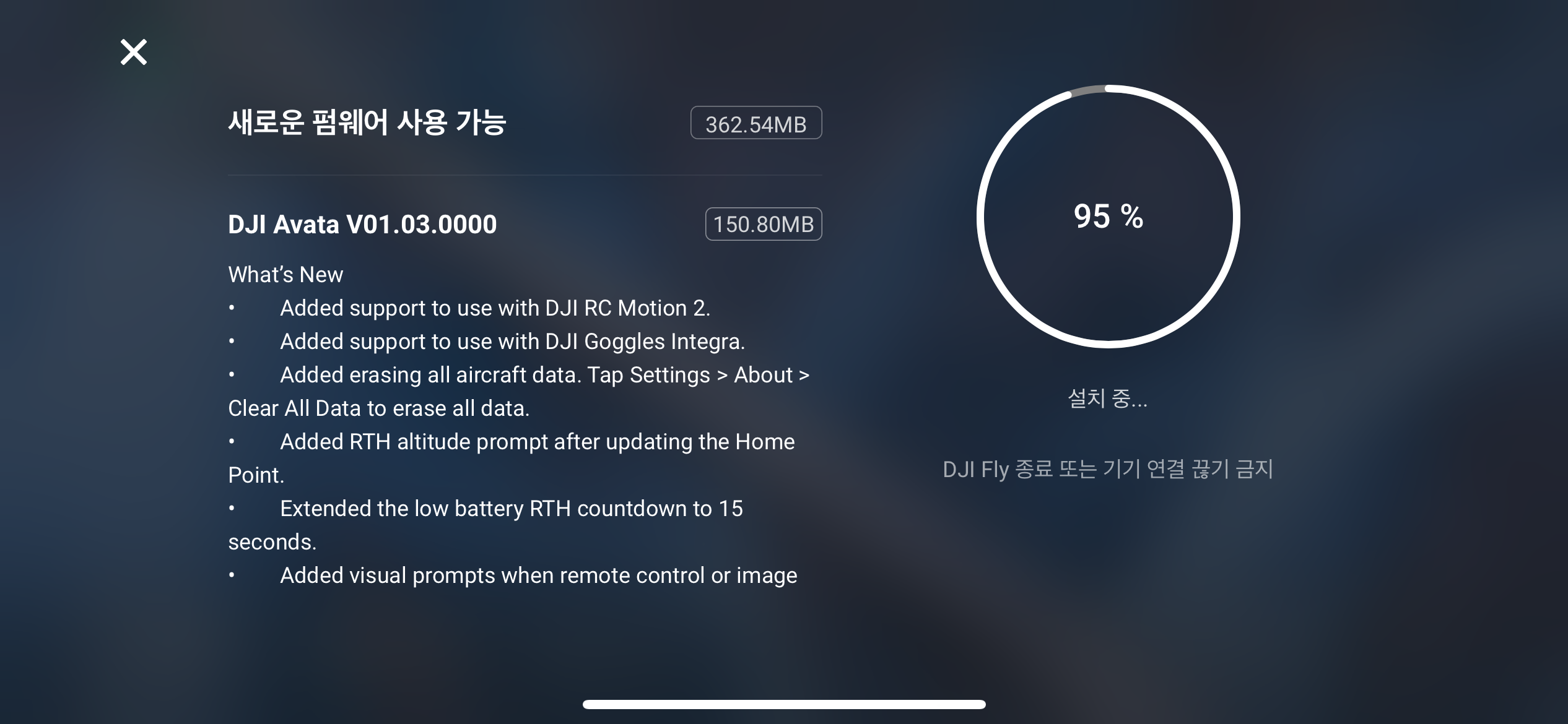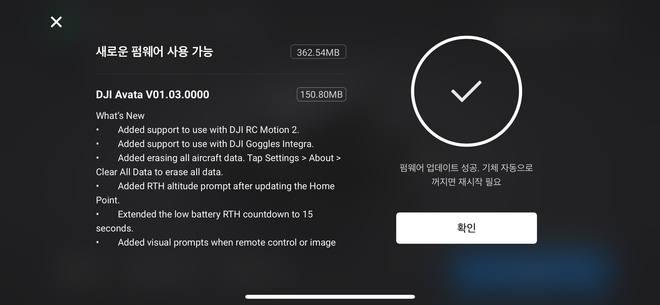 dji avata V01.03.000 펌웨어 업데이트 되었다