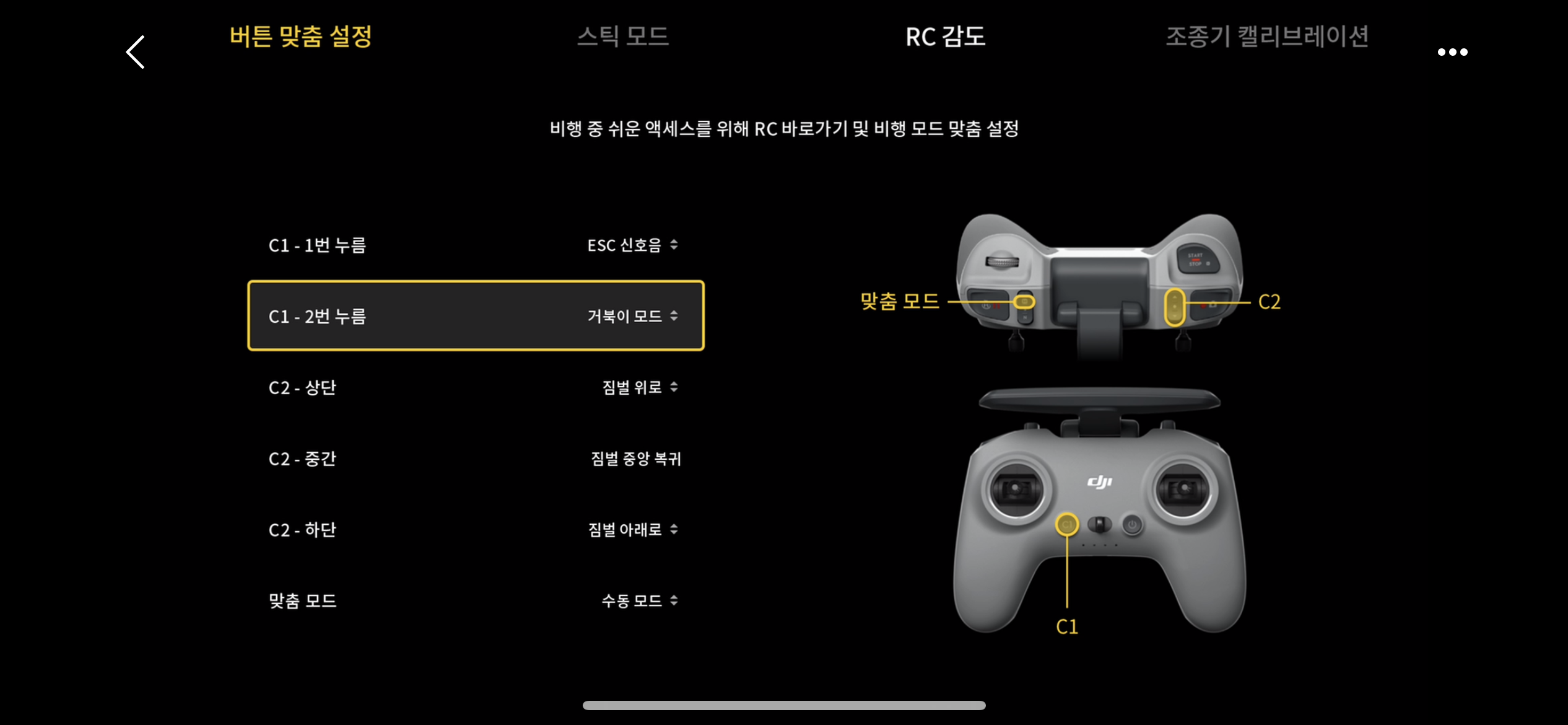 DJI FPV 조종기 2의 C1버튼을 잘 활용하면
