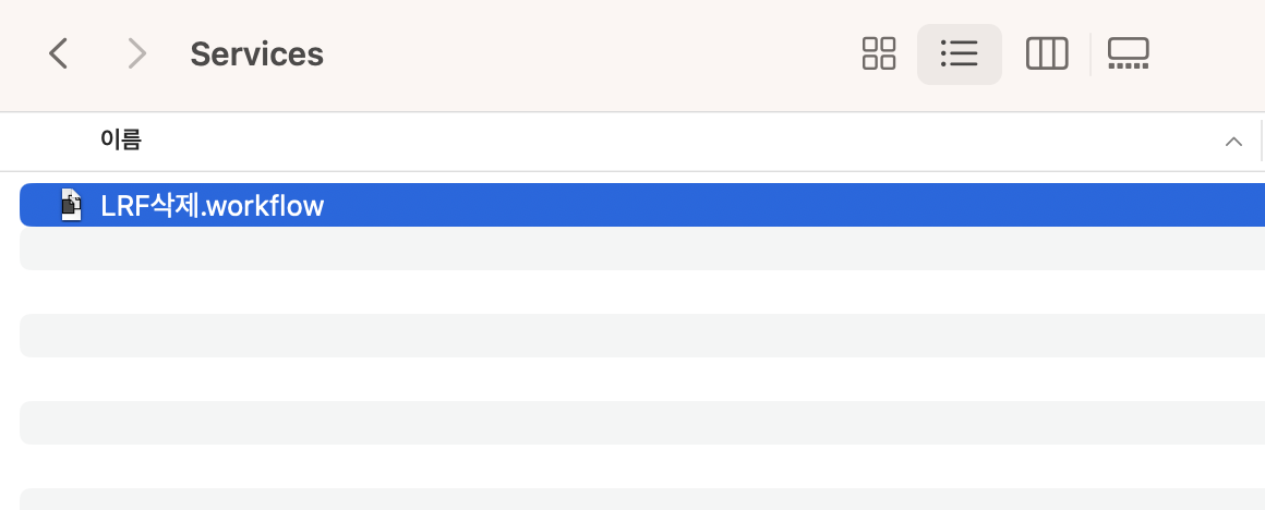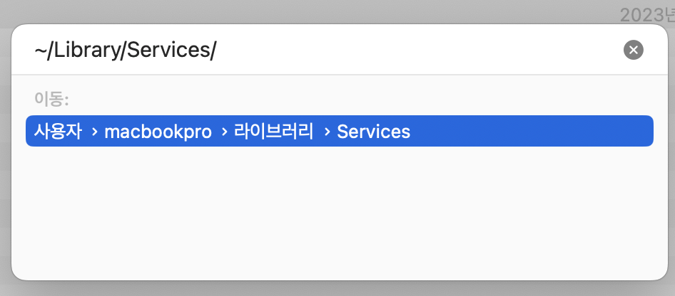 경로위치 : /Users/사용자계정/Library/Services 로 이동하게 된다