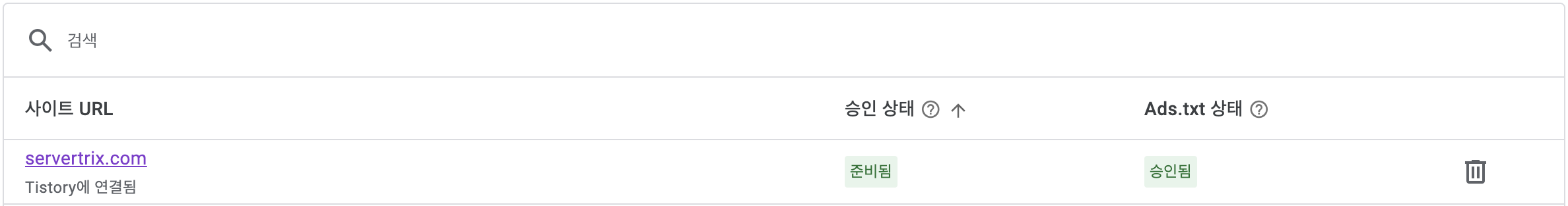며칠 후 Ads.txt 확인해보면 찾을 수 없음이 승인됨으로 변경되어 있다
