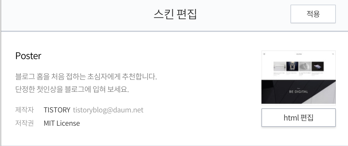 티스토리 관리자 메뉴 > 스킨편집 > html 편집