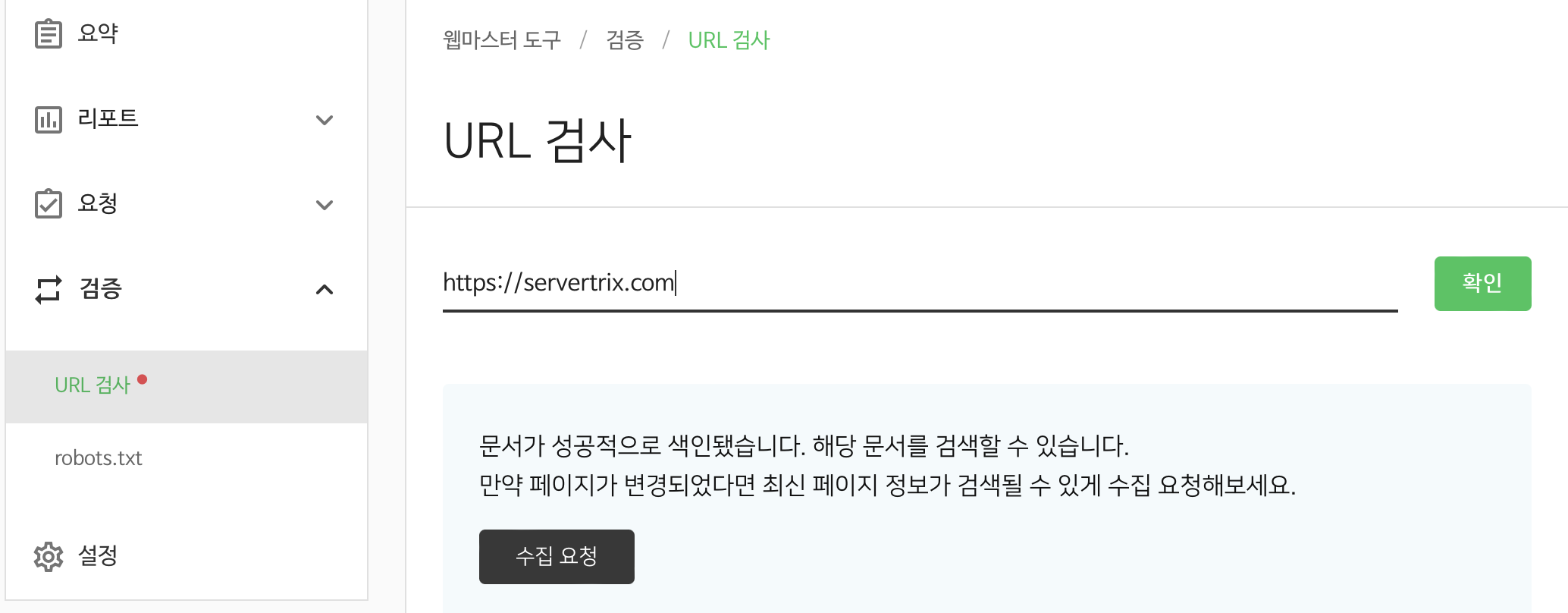 일정시간이 지나고 URL 검사를 해보면 해결된 것을 확인할 수 있다