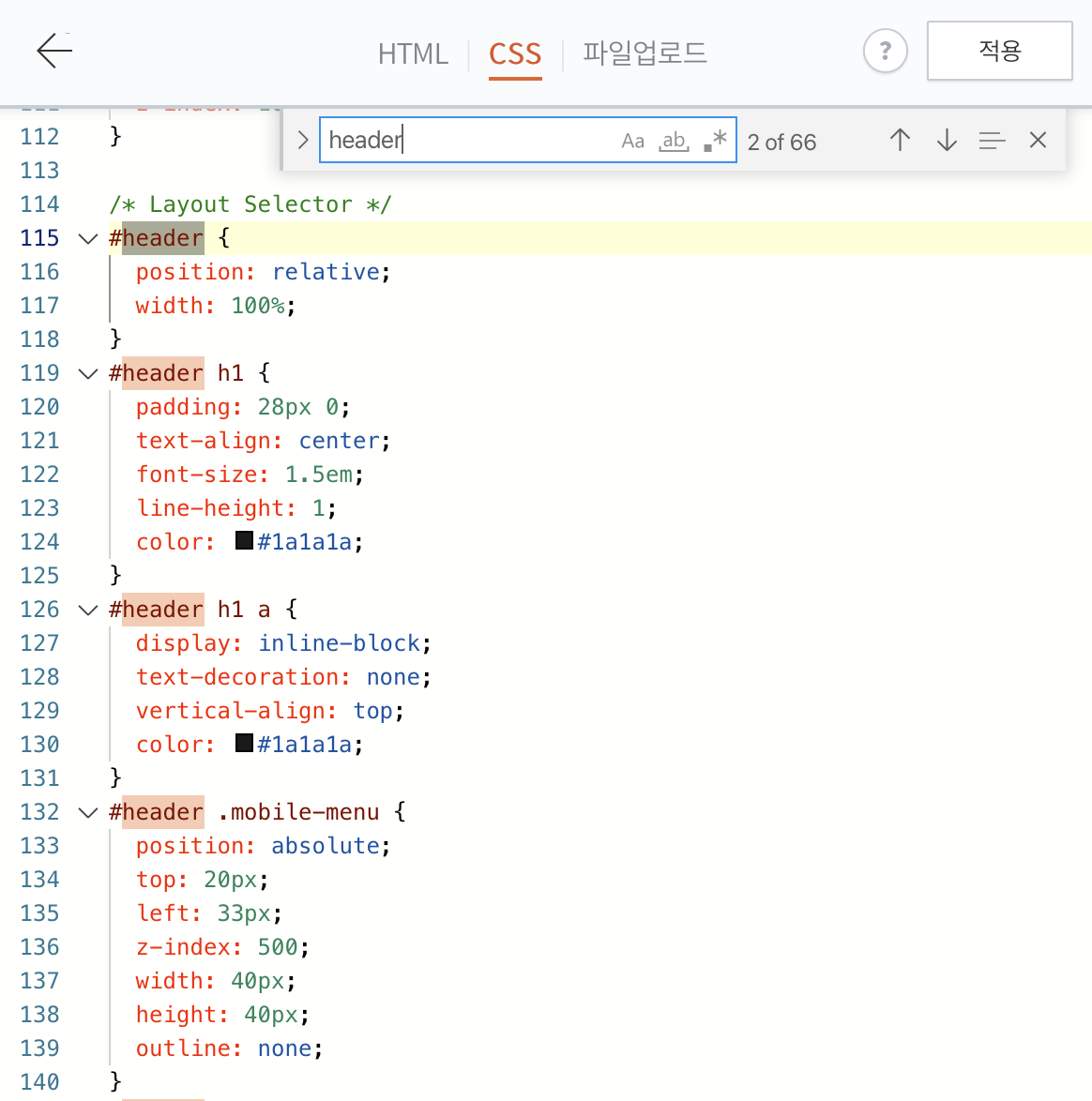 #header h1 로 검색해보면 5개가 검색되는데 모두 이름을 바꿔준다