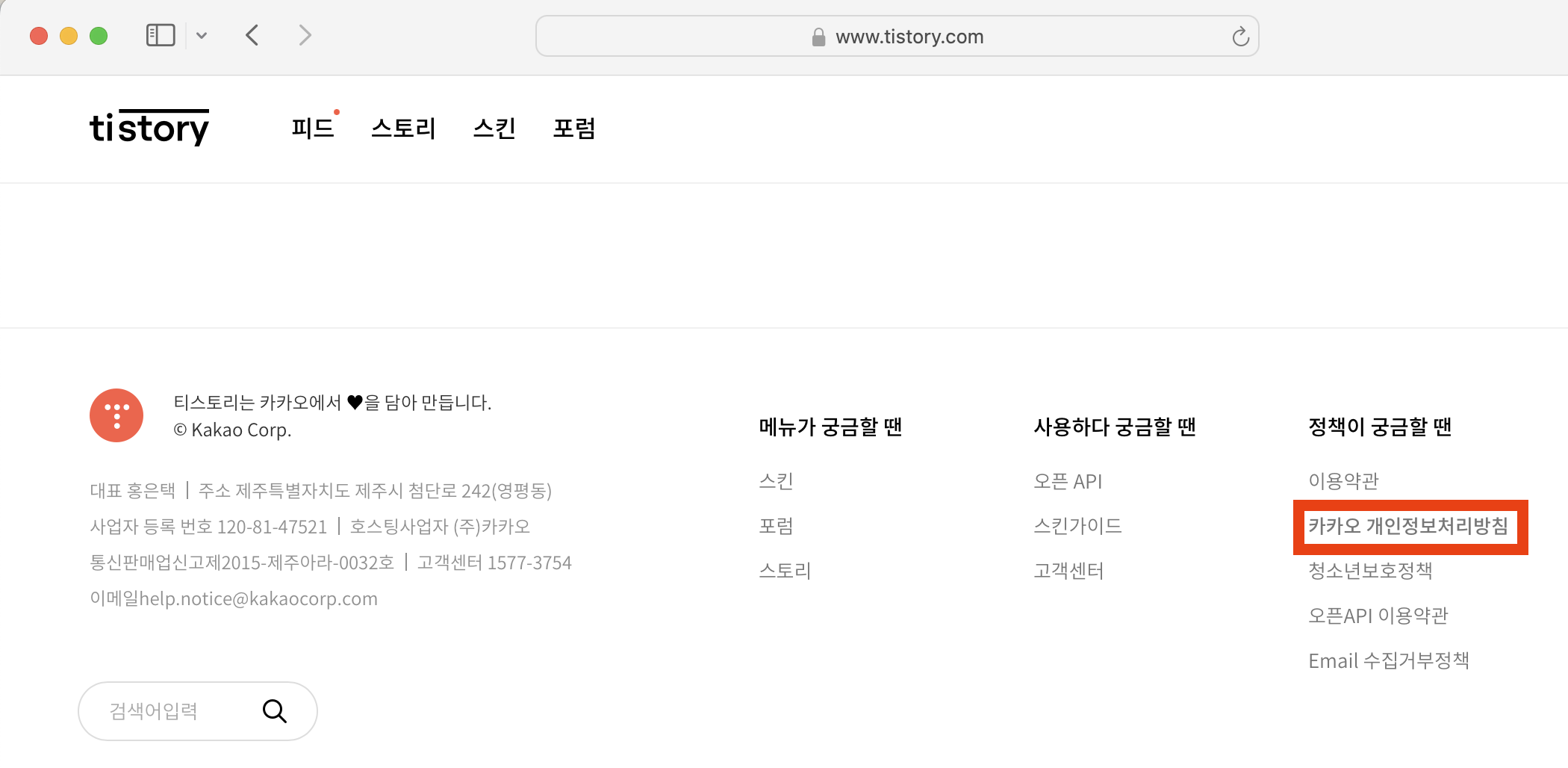 자 그럼 티스토리의 개인정보처리방침을 따라가 보자