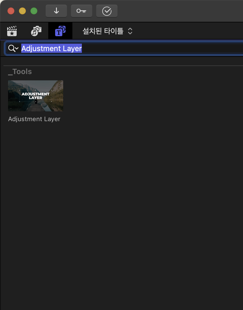 파이널컷 타이틀에 전체를 놓고 Adjustment Layer를 검색