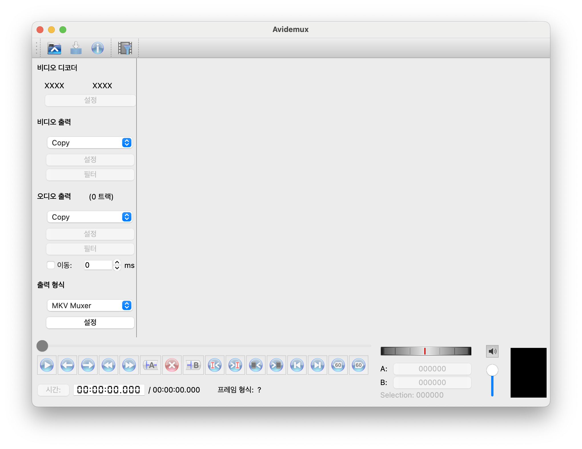 영상을 드래그&드롭하고 A, B로 시작지점, 끝지점을 설정한 뒤에 저장하기를 눌러주면 mkv로 저장이 되는