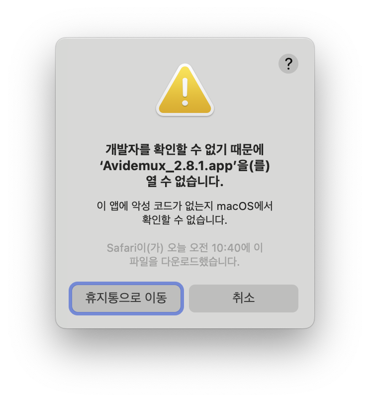 실행을 하고 싶은데 개발자를 확인할 수 없기 때문에 'Avidemux_2.8.1.app'을(를) 열 수 없습니다. 라고 나온다