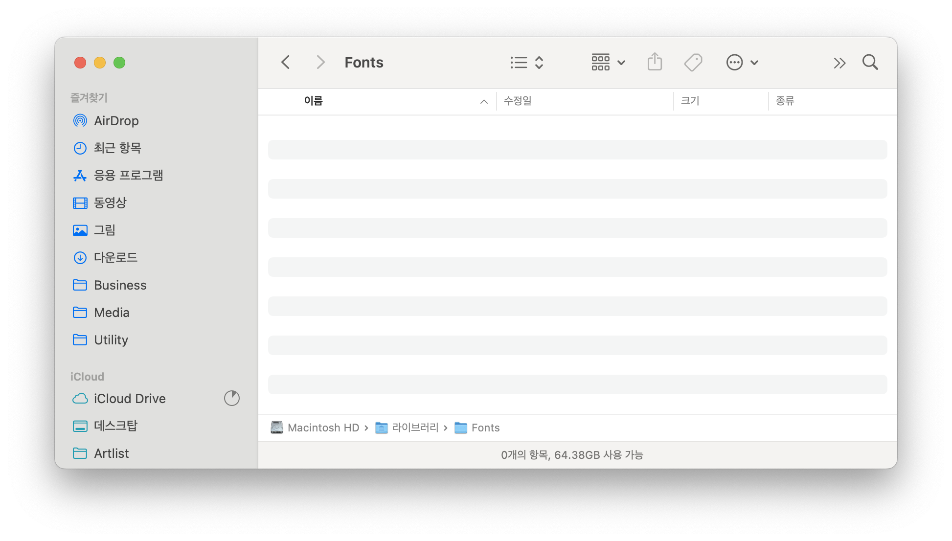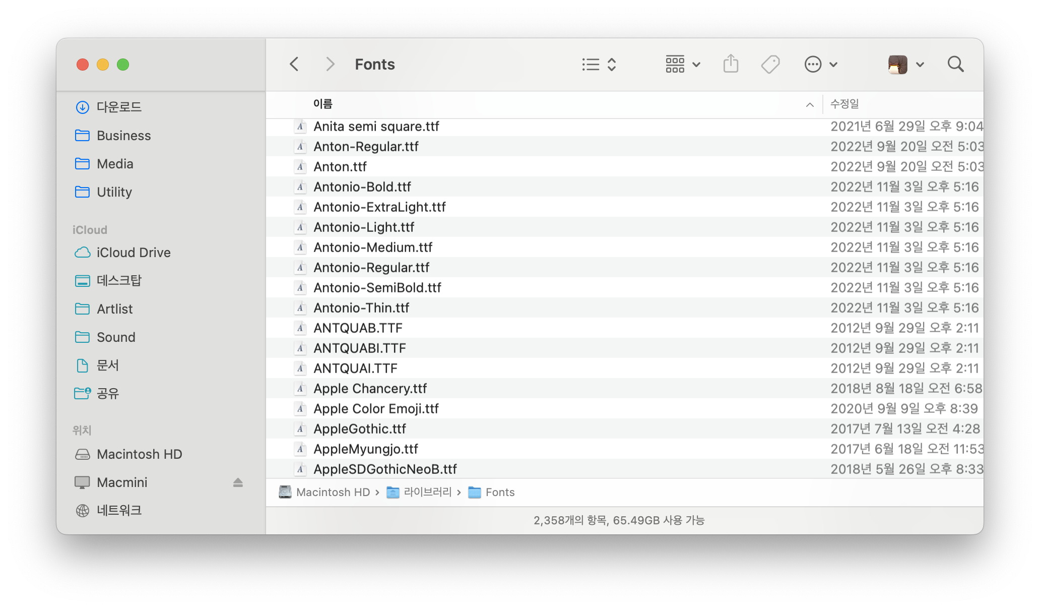 폰트 폴더를 다시 살펴보면