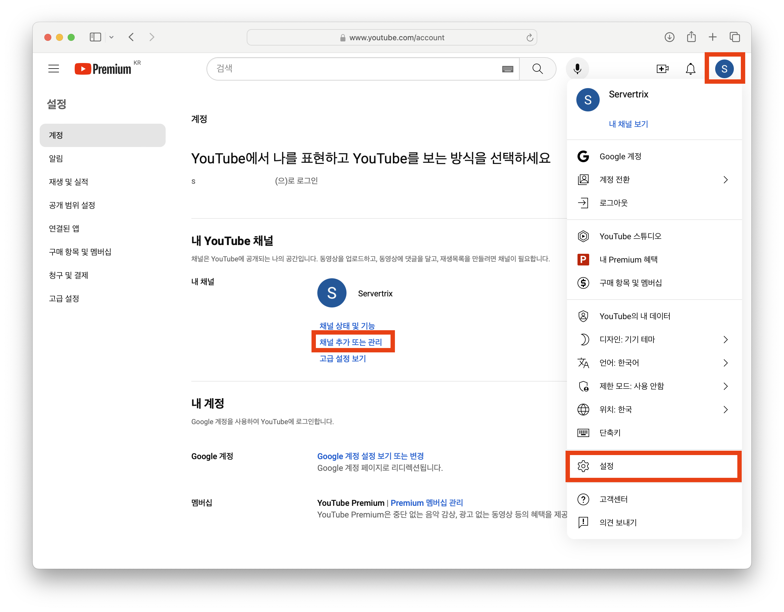 1. [유튜브 > 설정 > 계정] 메뉴로 이동 www.youtube.com/account
