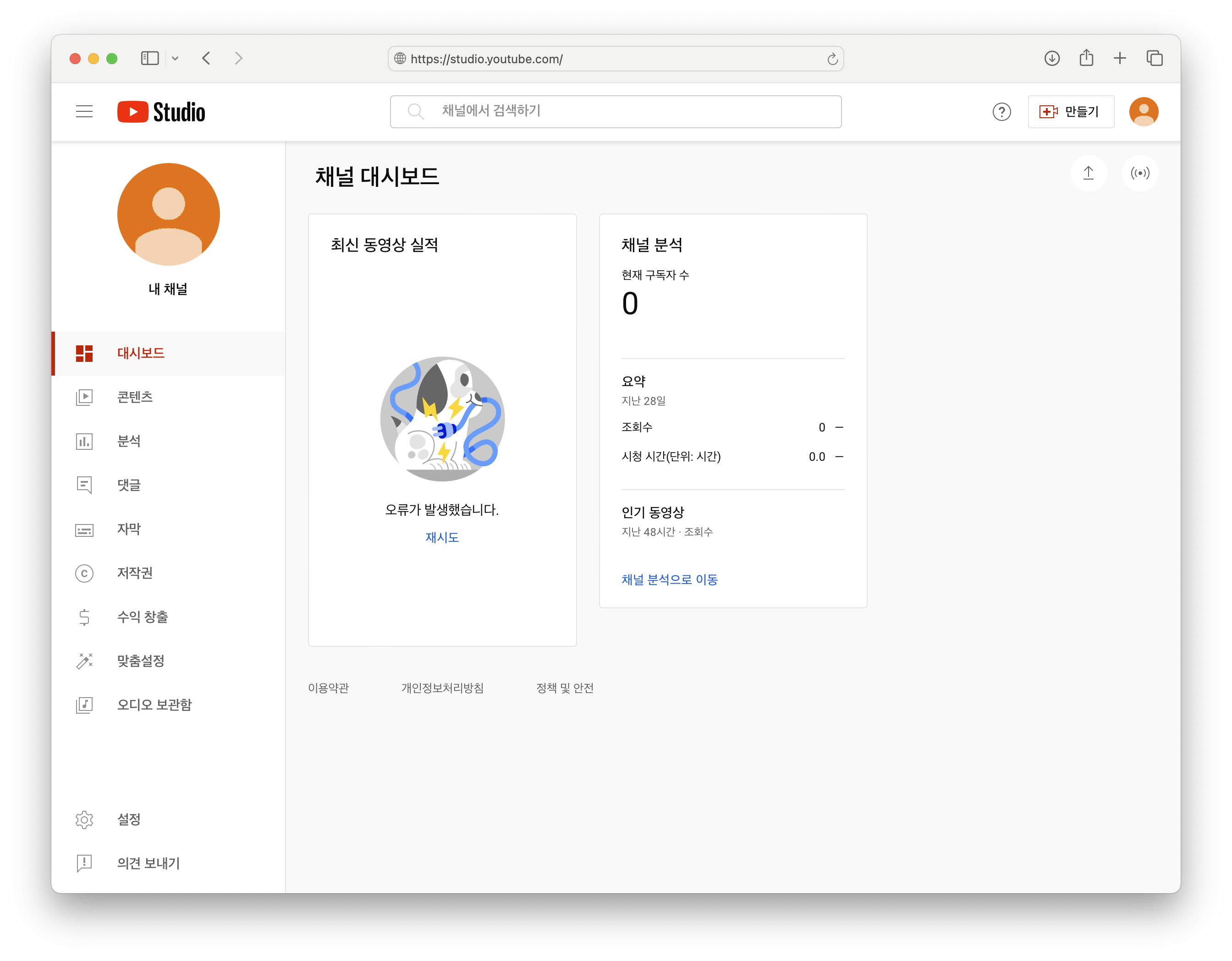 5. [채널 개설 완료] 유튜브 스튜디오로 이동해서 확인해보자! https://studio.youtube.com