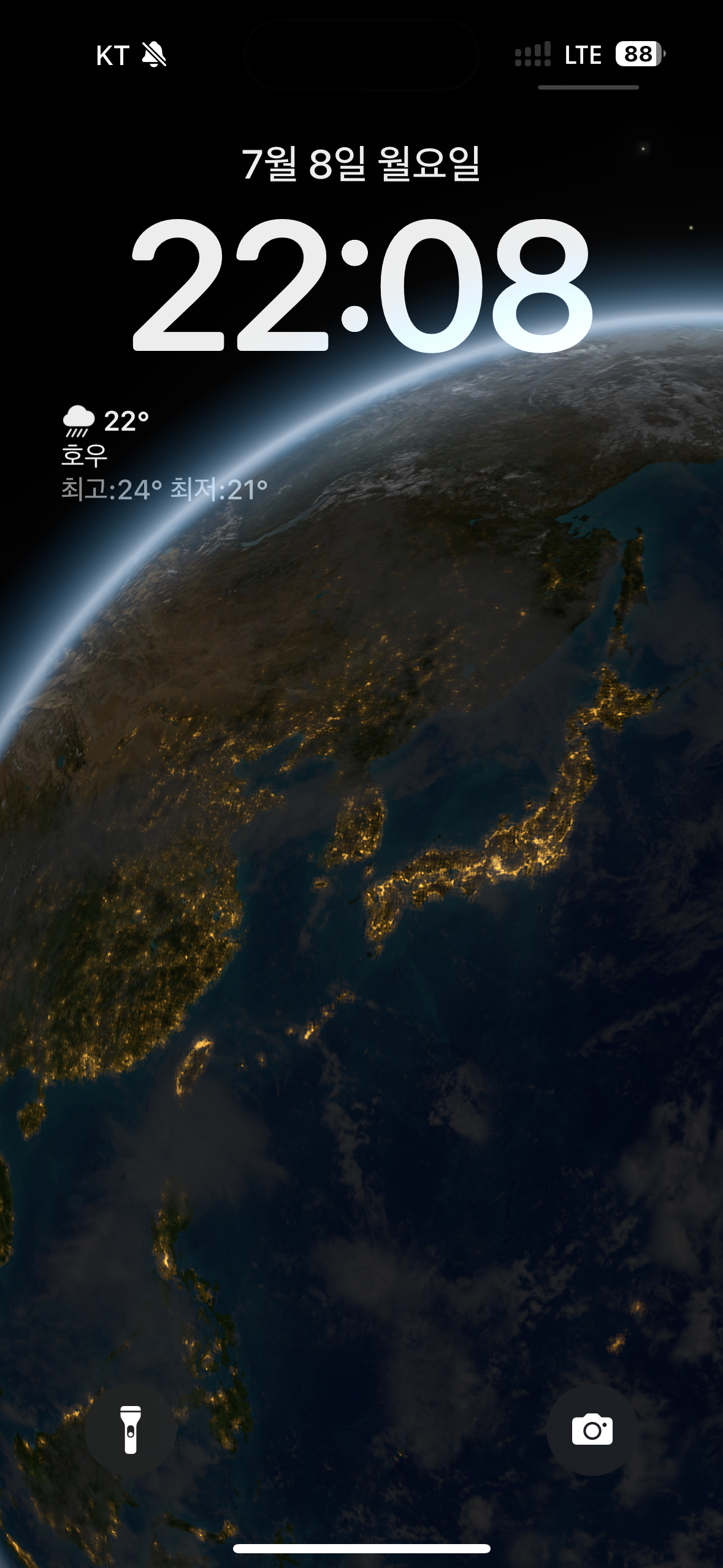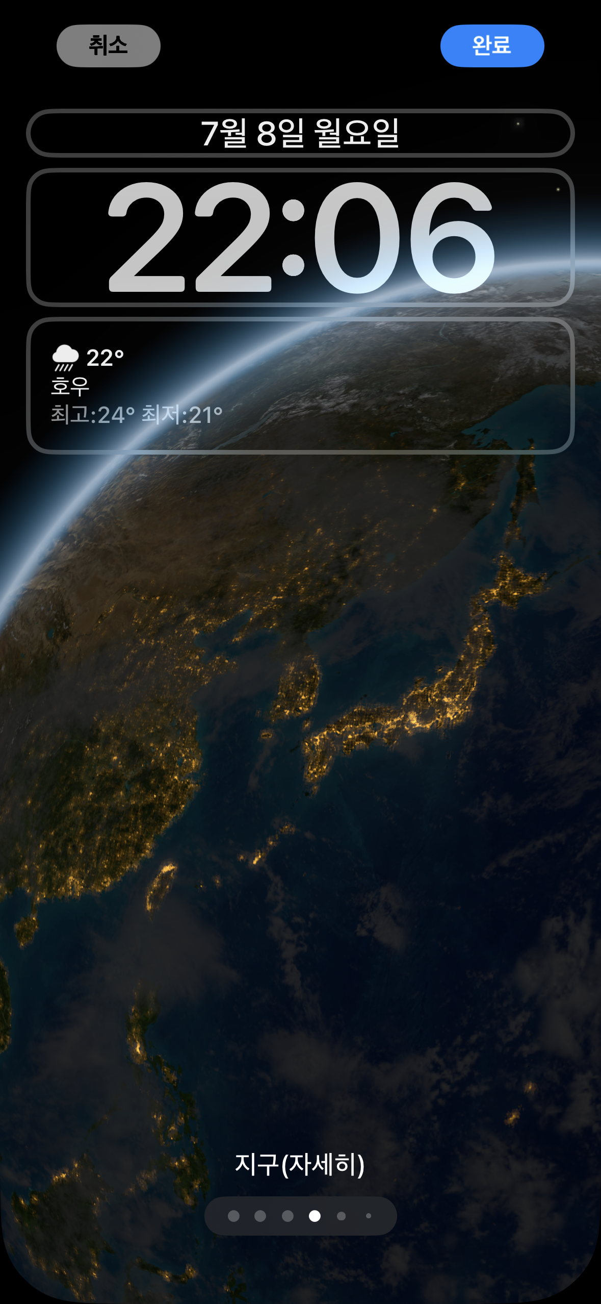 아이폰의 잠금화면의 상단 시계 어두움..