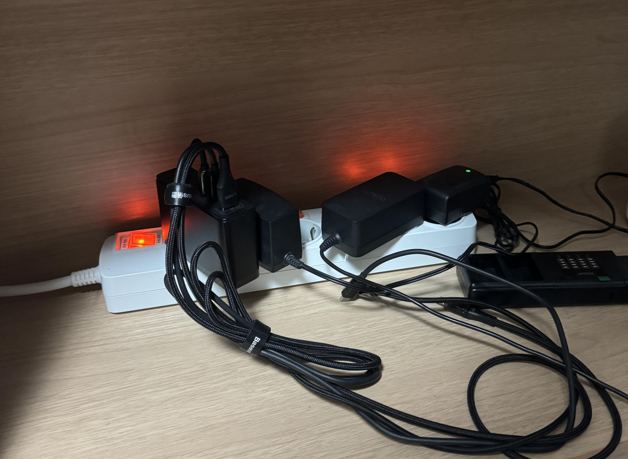 usb 고속충전을 위해 베이스어스 140w 충전기를 멀티탭에 꽂아서 쓰고 있었는데