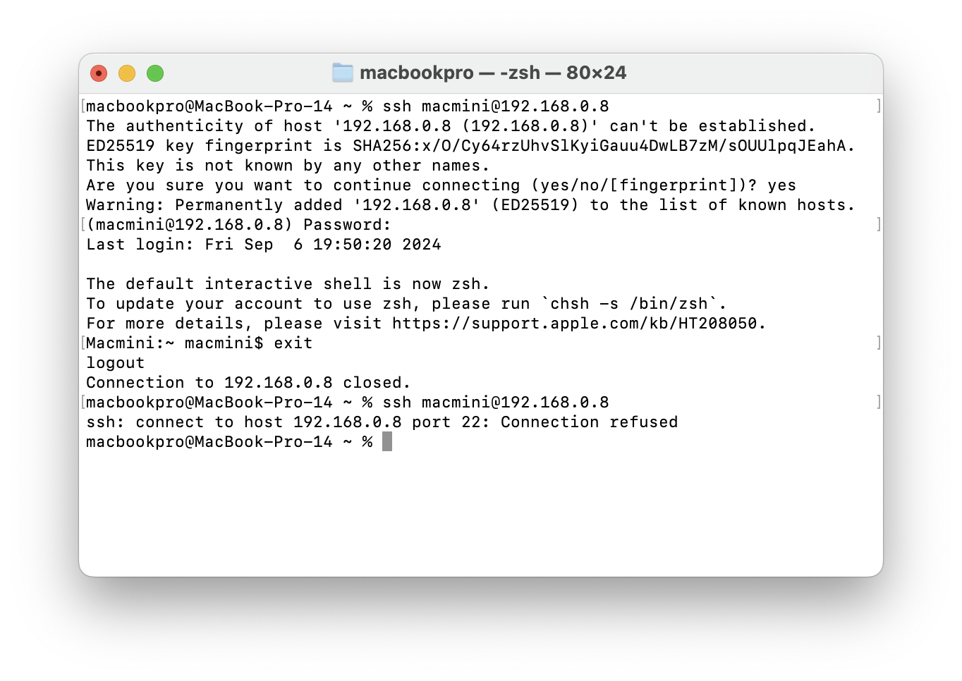 2. (맥북) 방금 설정한 맥미니로 ssh 접속