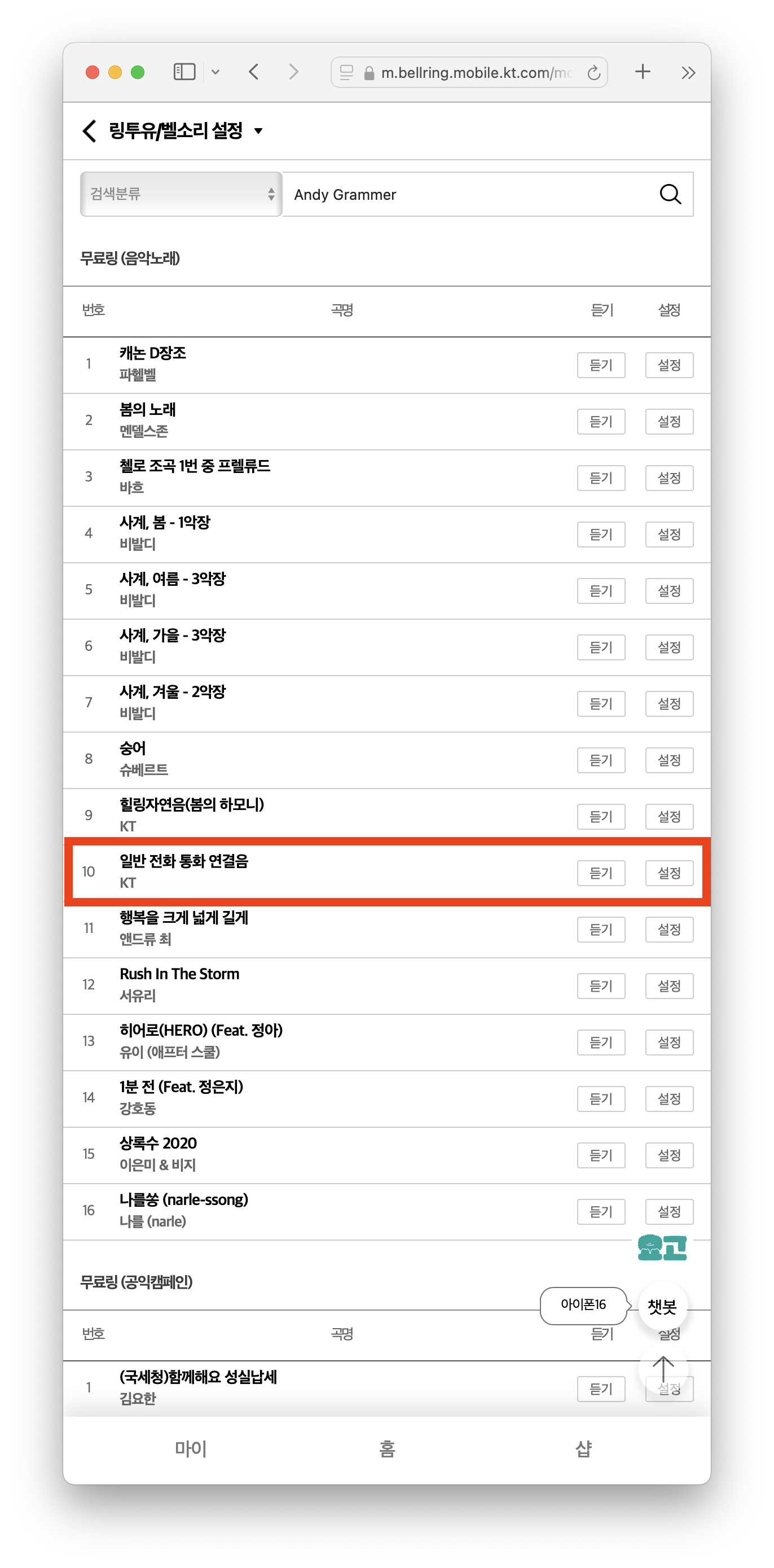 그런데 기본 뚜뚜뚜하는 신호음이 아니라 기본음악이 흘러나온다