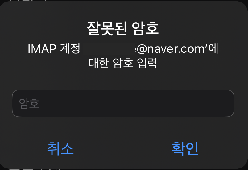 네이버 메일 계정의 암호를 계속 입력하라는 창이 뜬다