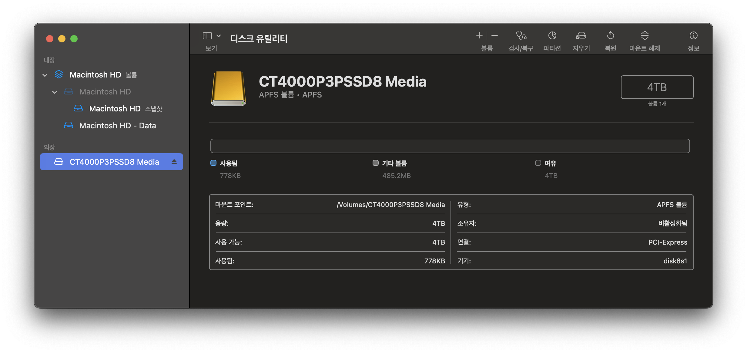 아카시스 Thunderbolt 인클로저와 마이크론 p3 plus 4테라 ssd의 호환성은 기존에도 쓰고 있었기 때문에