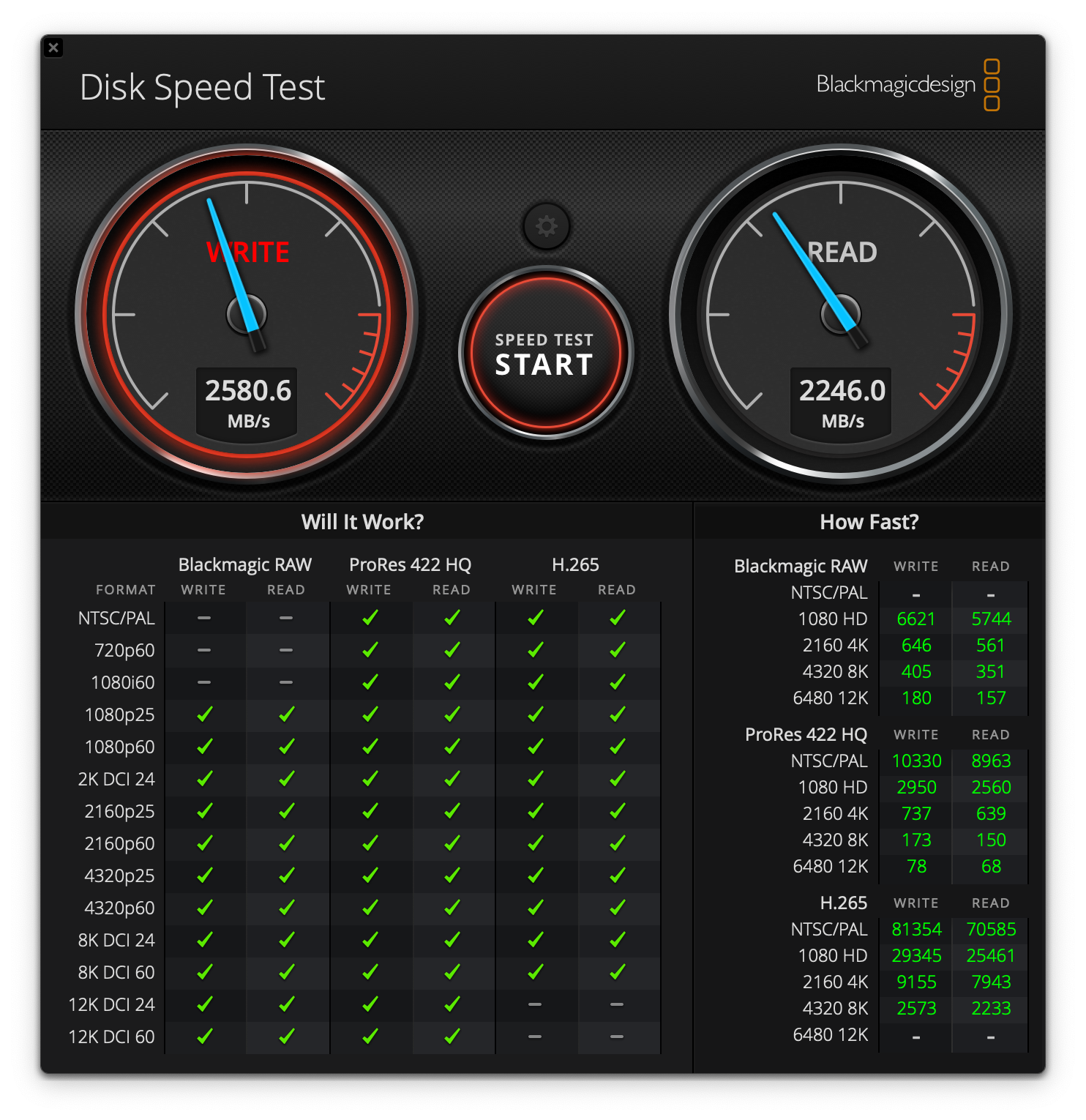 쓰기 2580 MB/s, 읽기 2246 MB/s