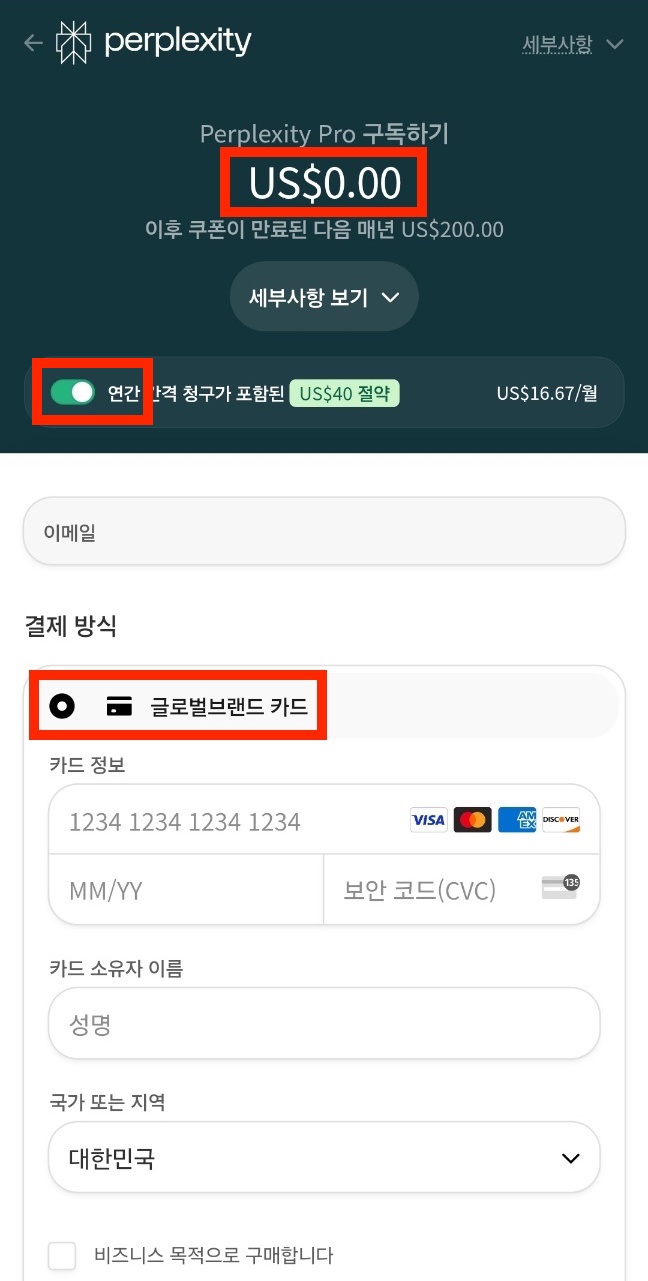 7. 해외결제가 되는 카드로 결제 진행
