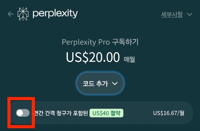 5. 월 구독에서 연간 구독 버튼 클릭