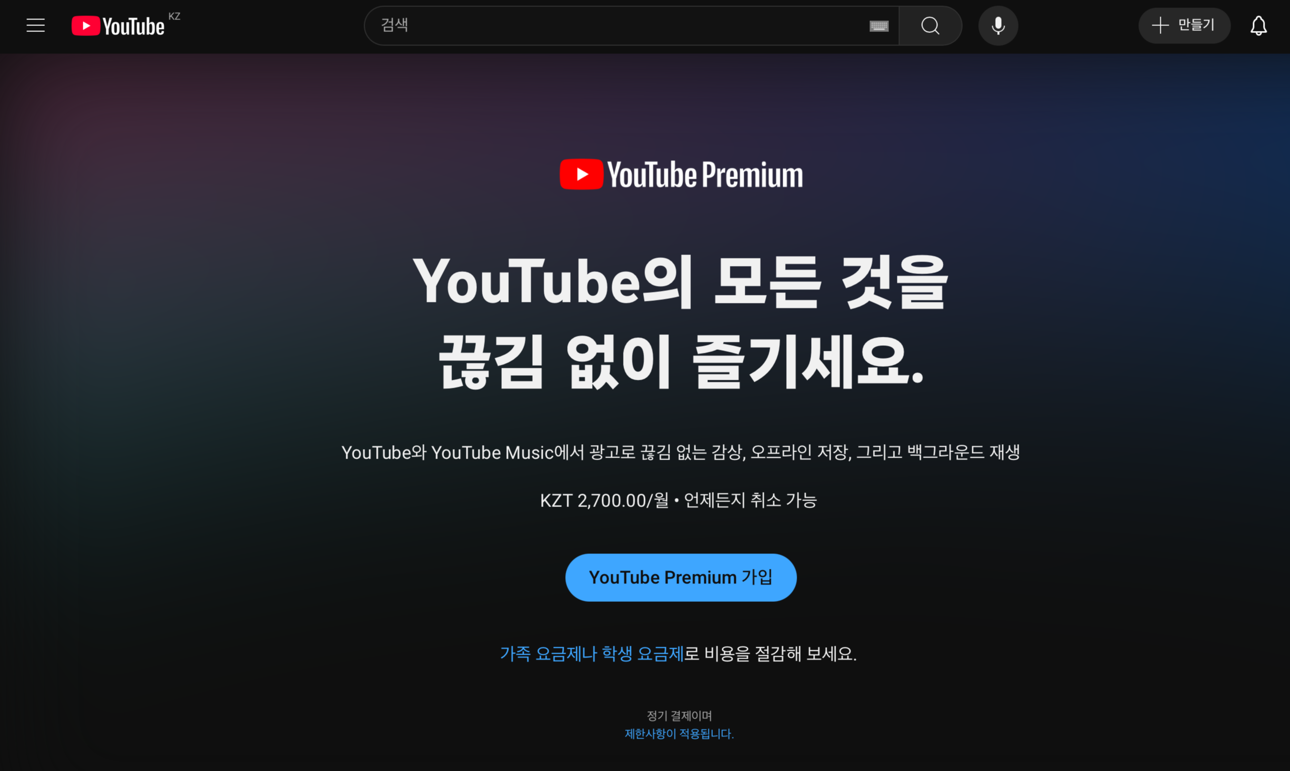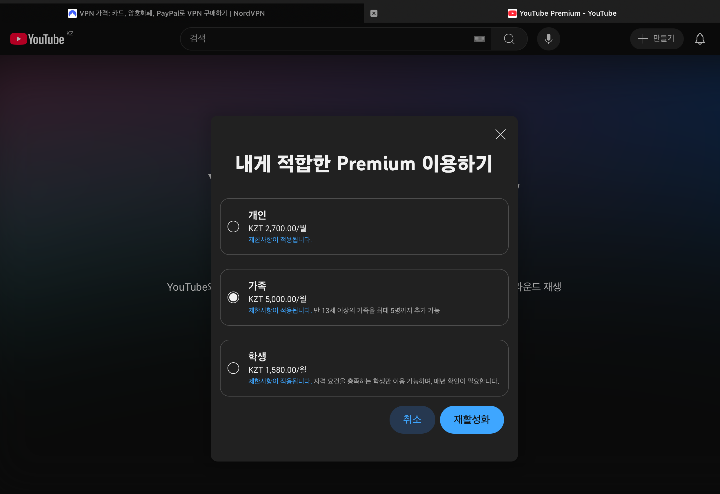 유튜브 프리미엄 패밀리 멤버십 VPN 우회 차단 그래도 방법은 있다! 페루 인도 터키 아르헨티나
