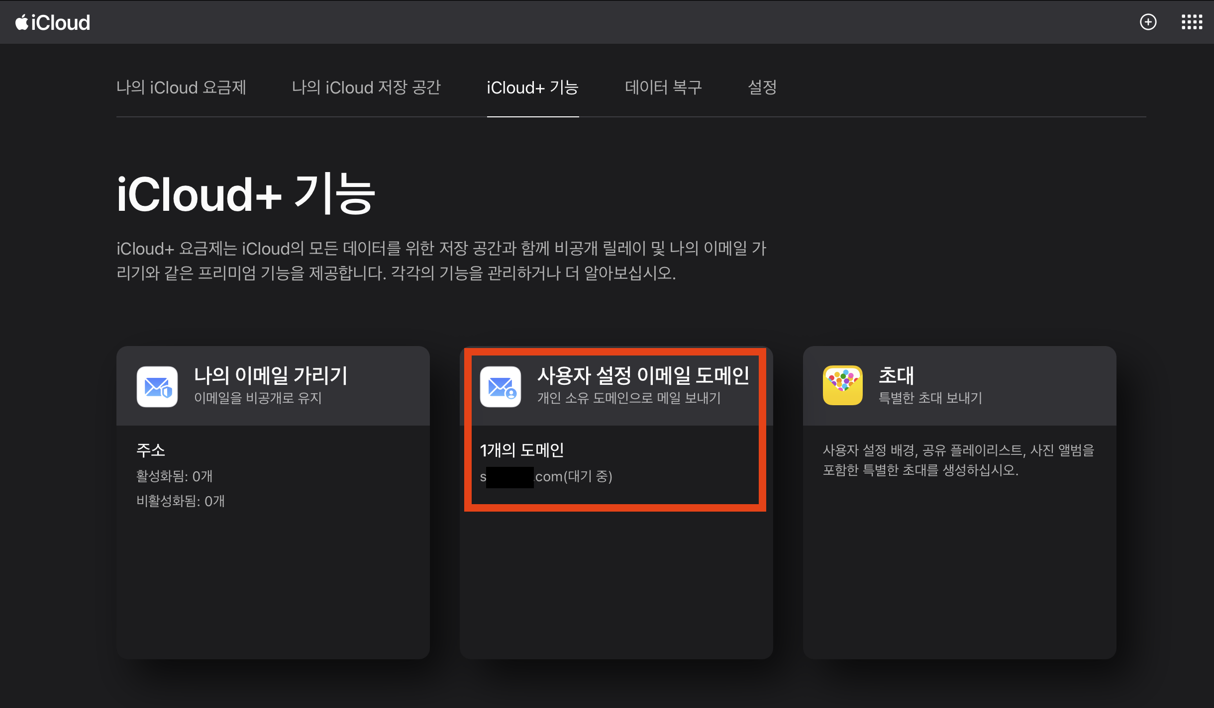 아이클라우드+를 이용하면서 개인 도메인을 가지고 있다면