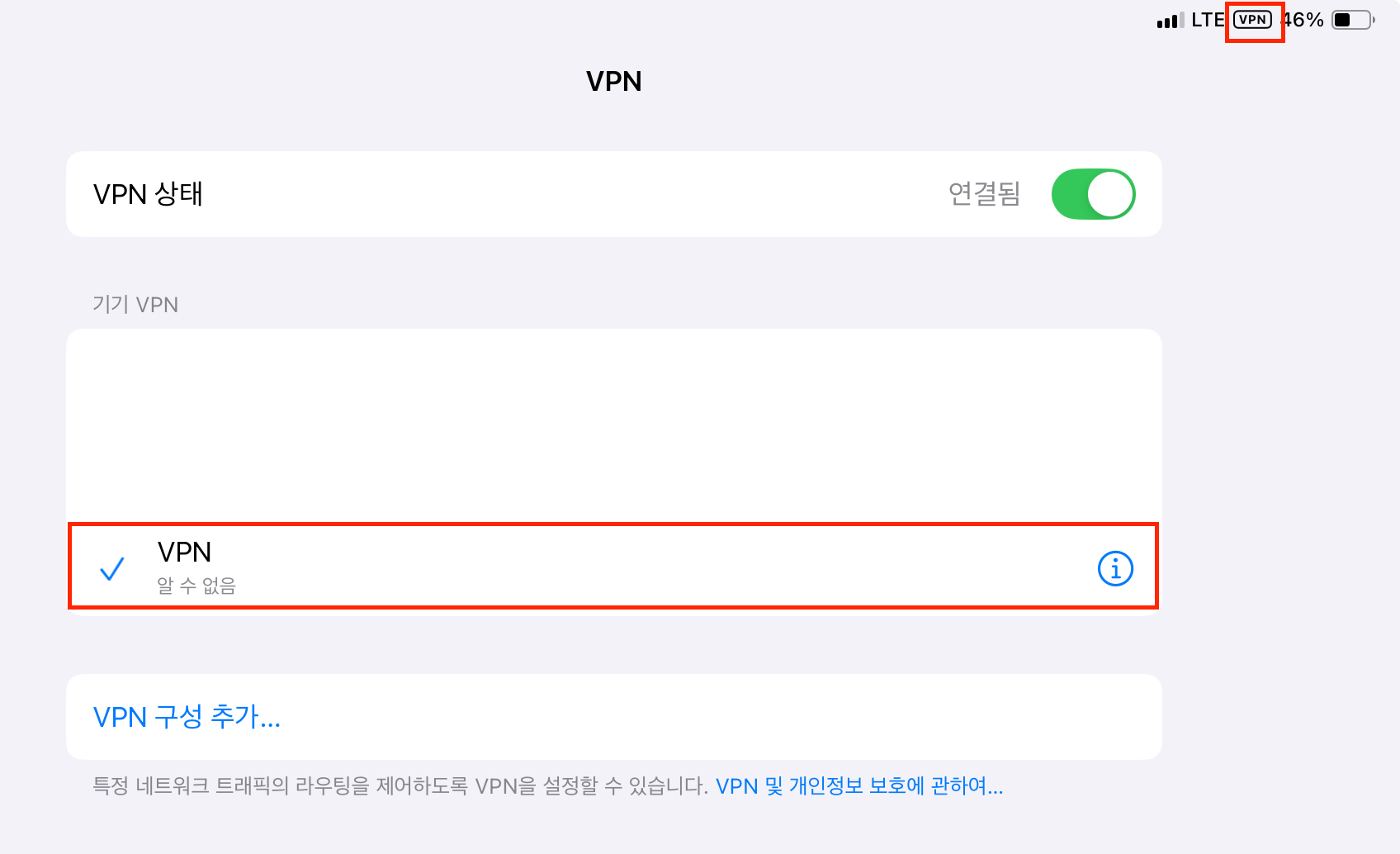 [설정>VPN] VPN 구성 추가를 누르자