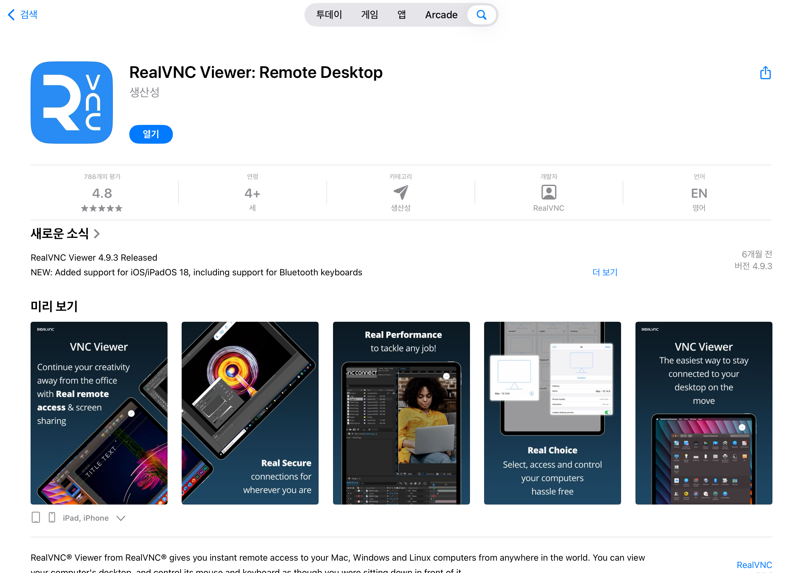 2. 아이패드 VNC 앱 설치