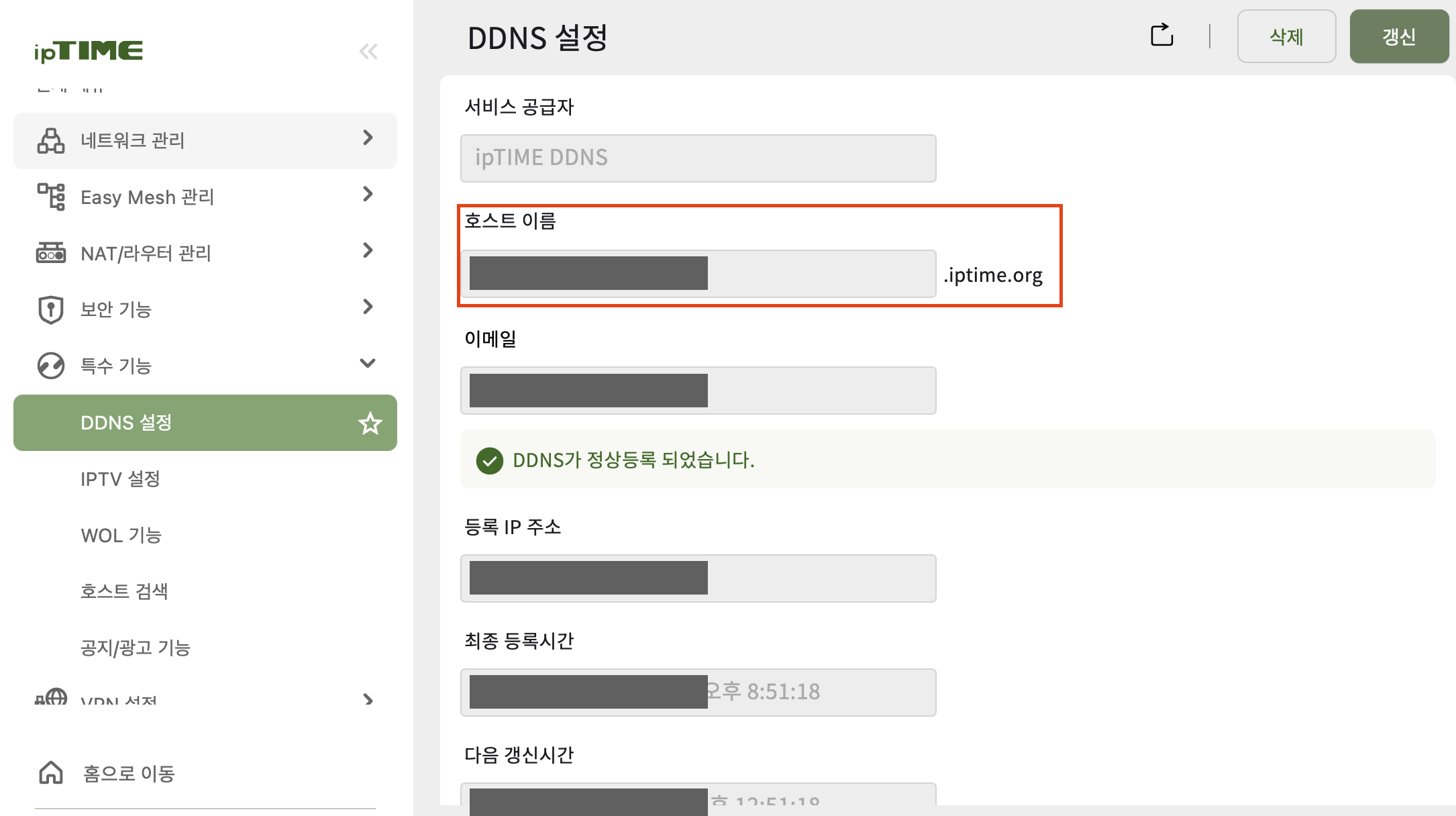 (서버) 3.2. DDNS 설정에서 했던 [신청한호스트명.iptime.org] 입력