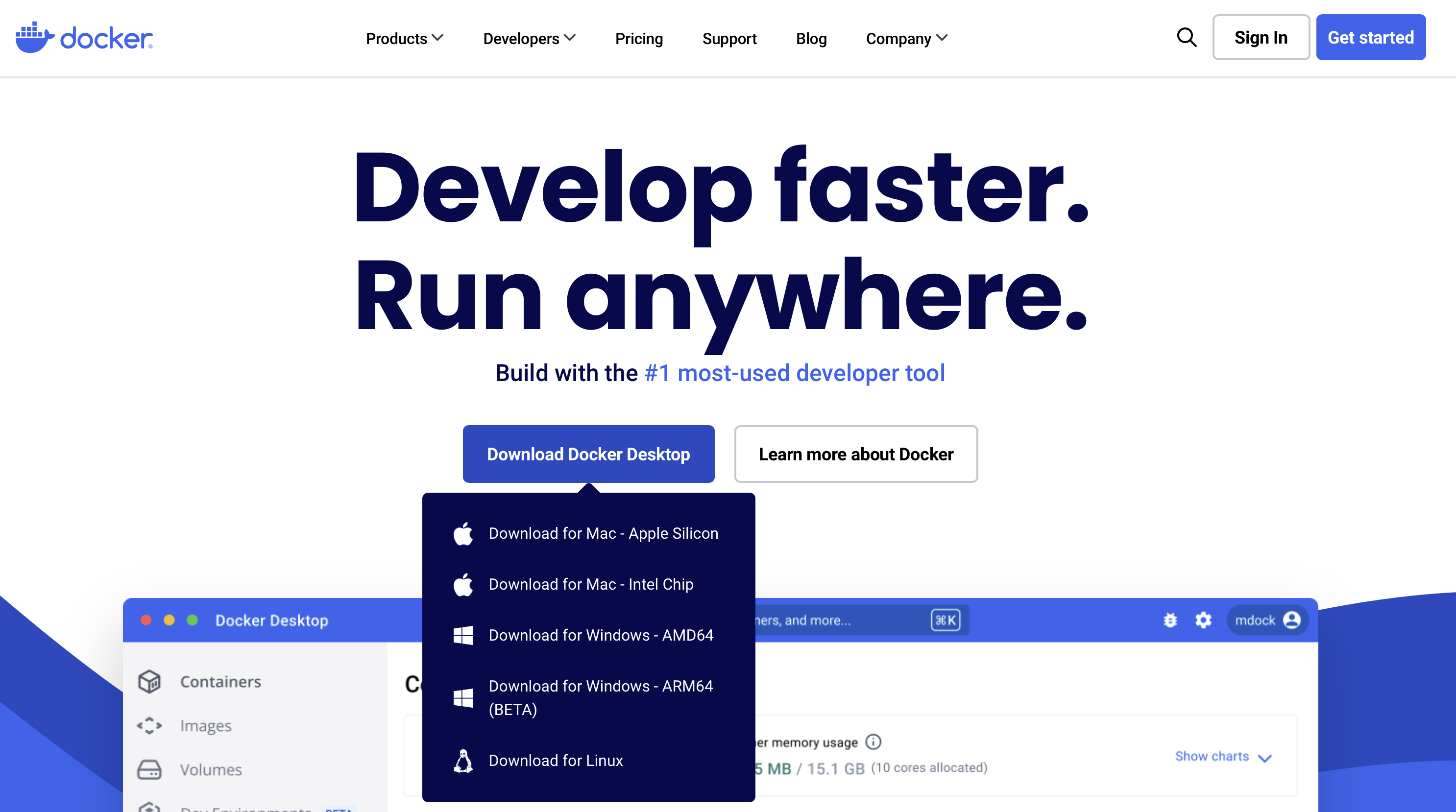 도커공식홈에서 자신의 상황에 맞는 설치파일을 다운로드 하면된다.