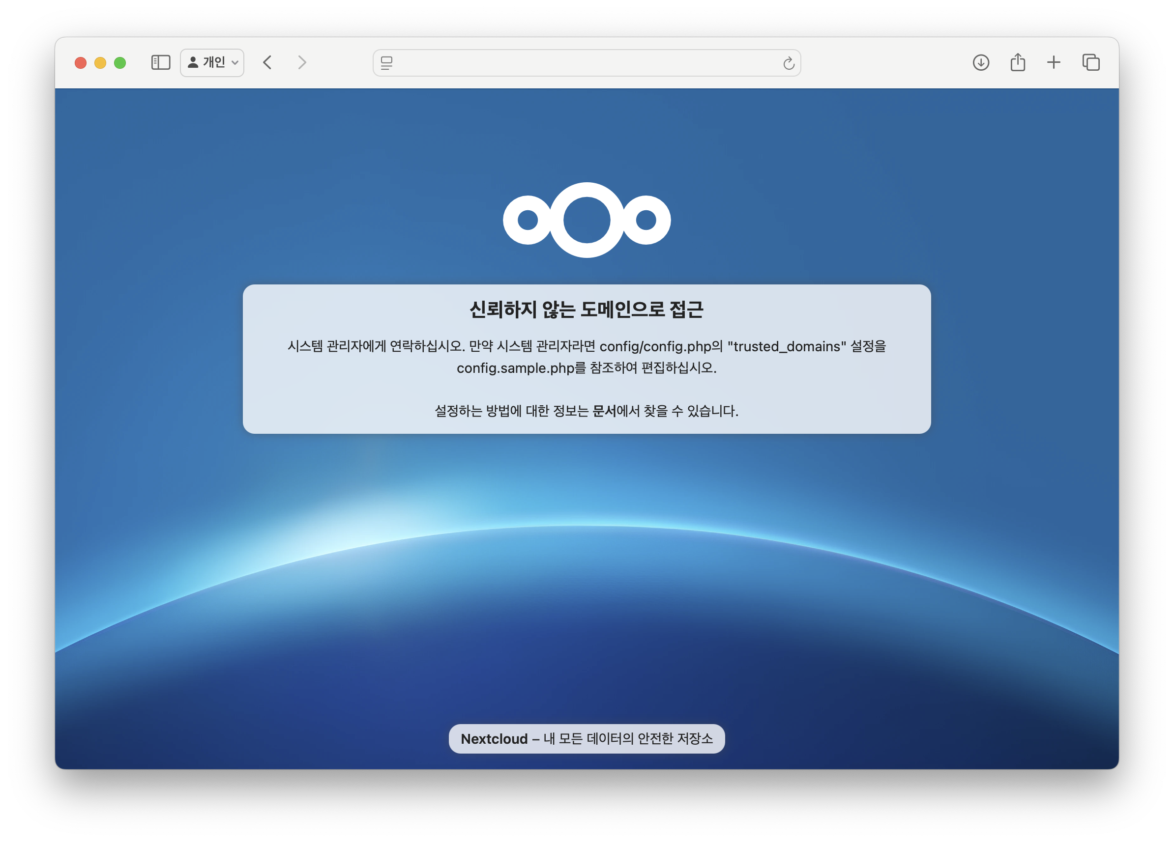 config/config.php 파일에서 trusted_domains 설정을 하라고 나온다.