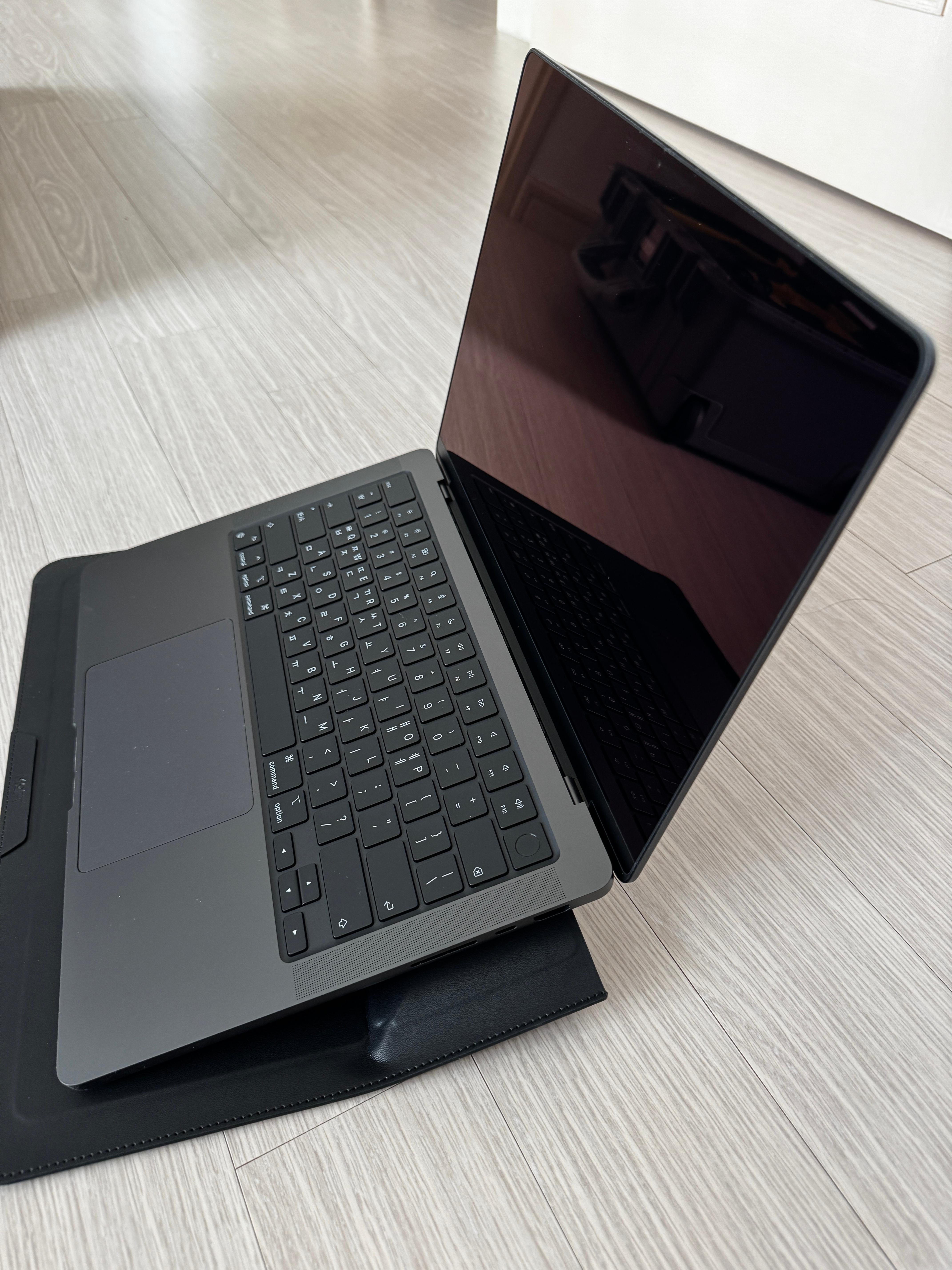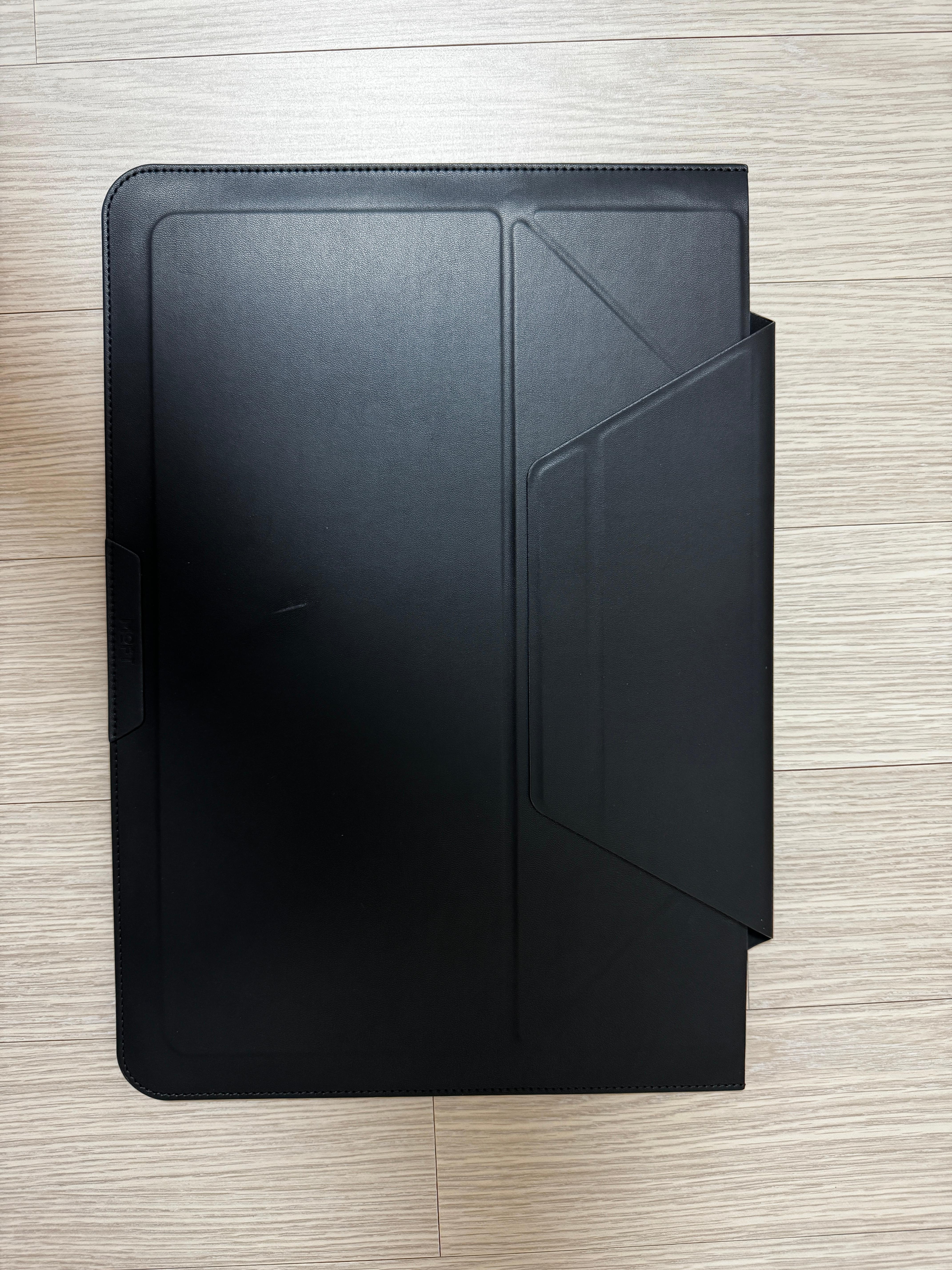 MOFT답게 첫인상 깔끔함. 디자인 군더더기 없고 인조가죽(PU) 고급짐. 아무 옷에나 괜찮음. 내가 산 건 13-14인치인데, 맥북 프로/에어, 그램 같은 슬림 노트북이랑 딱 맞음.
