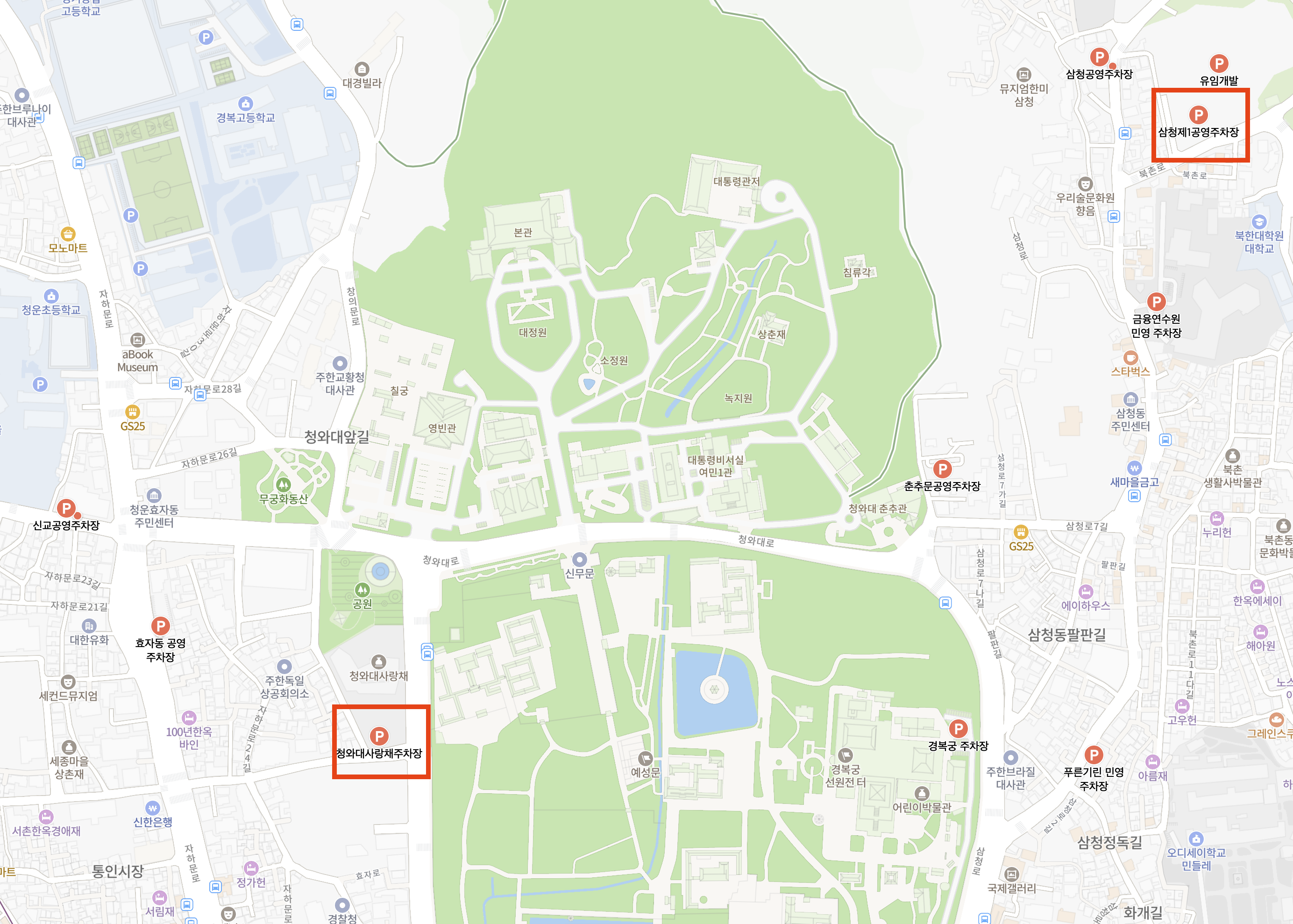 네이버 지도에 삼청제1공영주차장 또는 종로구 삼청동 25-1을 검색하면 된다