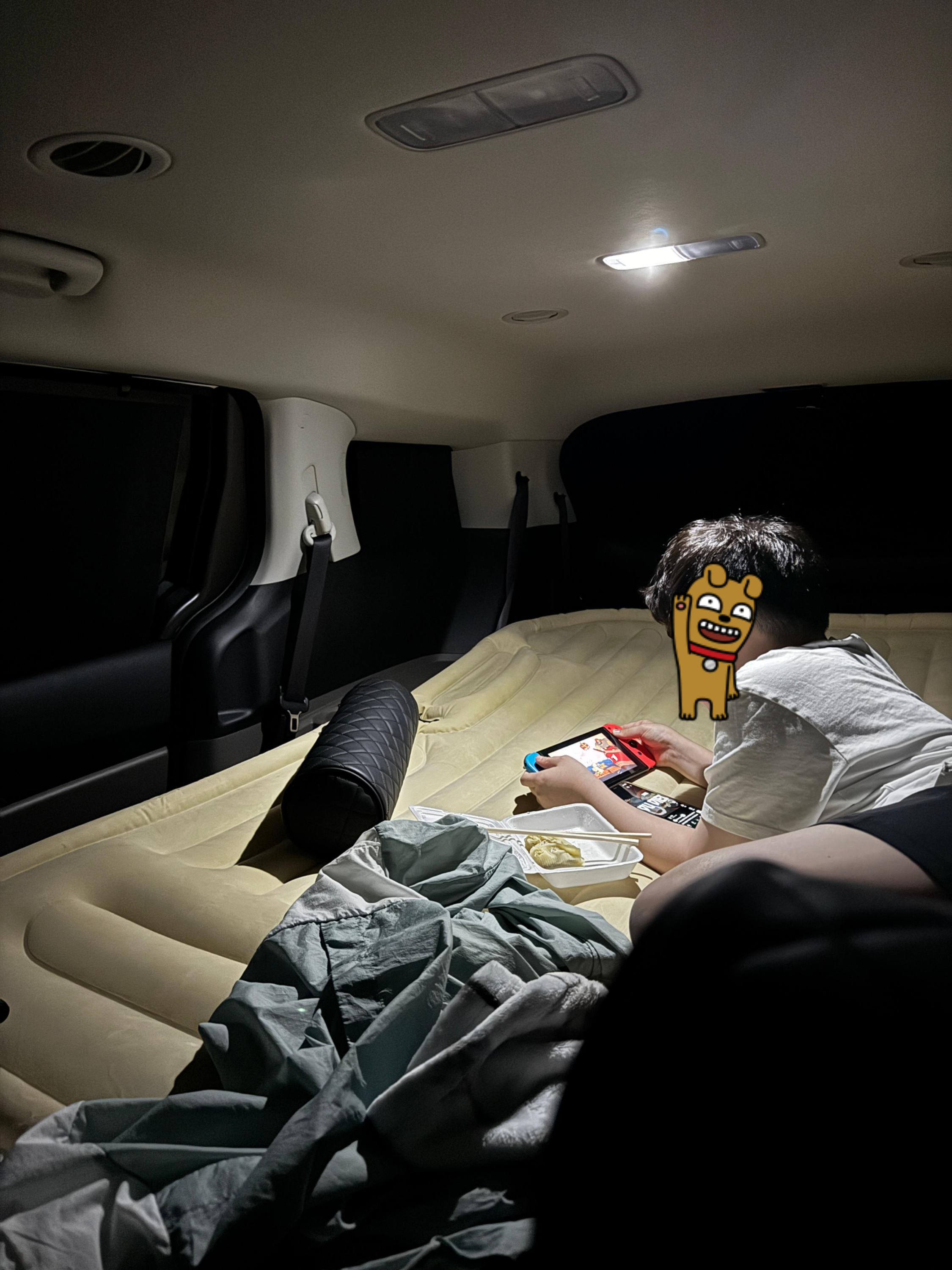 3명은 매트에 가로방향으로 누워서 자고 아빠는...운전석에서 뜬눈으로 지새우면 된다