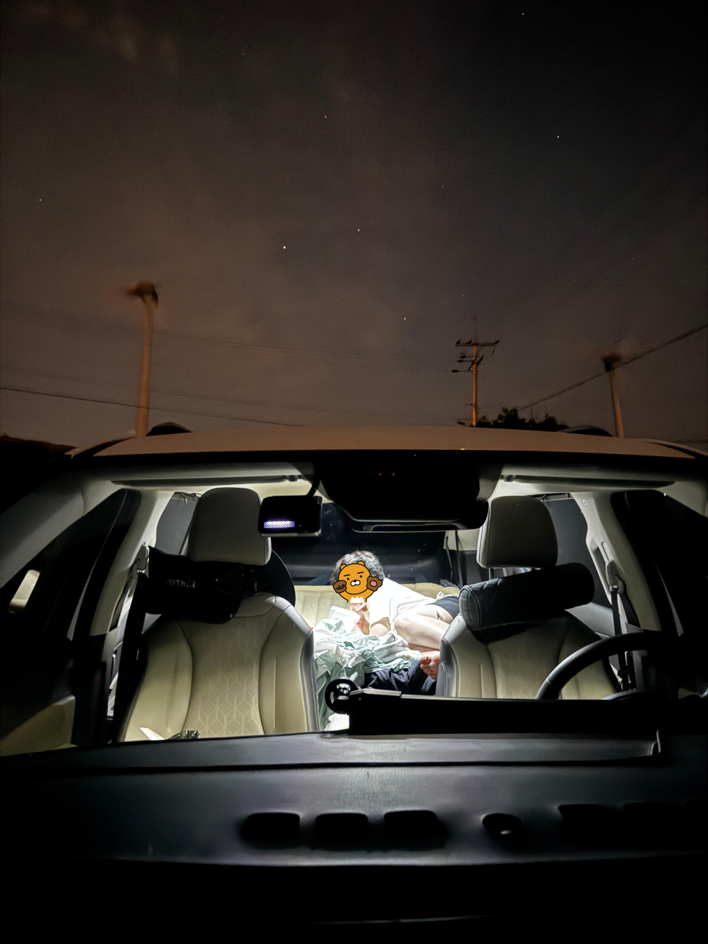 별 구경을 하니 벌써 자정이 넘었고 차에 가리개도 있었지만 설치하는 시간이 귀찮아서 실내등을 끄고 얼른 잠드는 방법을 선택했다