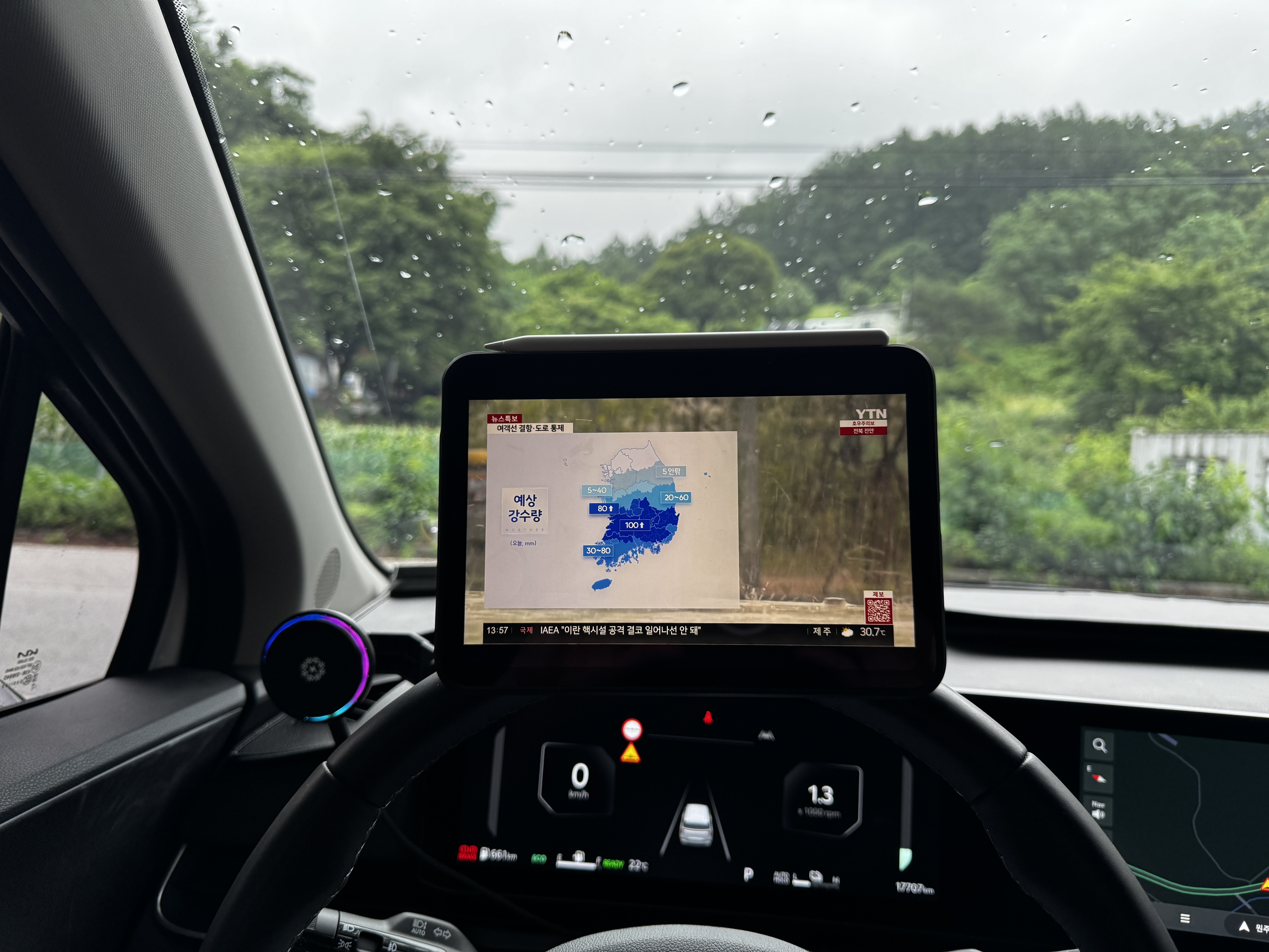 차량 핸들에도 거치할 수 있다! 잠시 주차하거나 졸음쉼터 또는 휴게소에서 사용하기 좋다