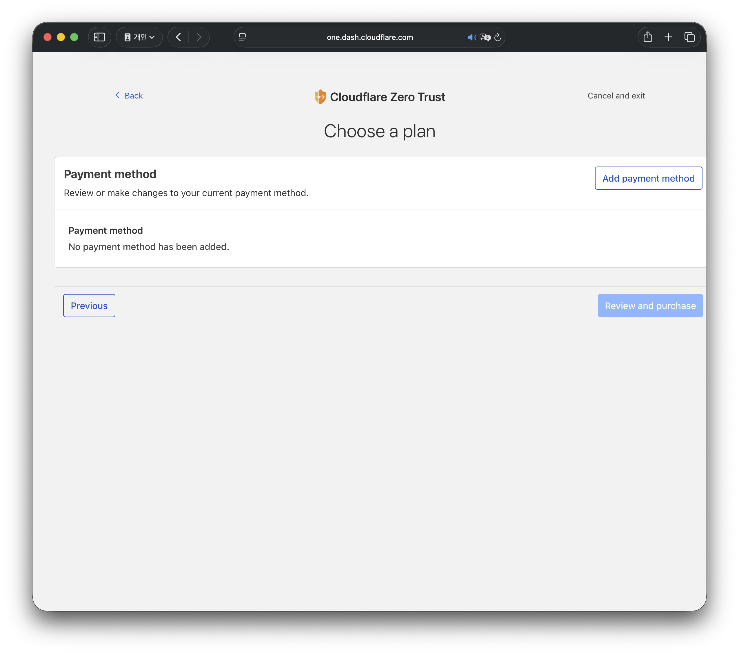 2. 돈이 없으니 Zero Trust Free 0원 짜리를 선택하면 결제수단을 등록하자! 돈나가는거 아님