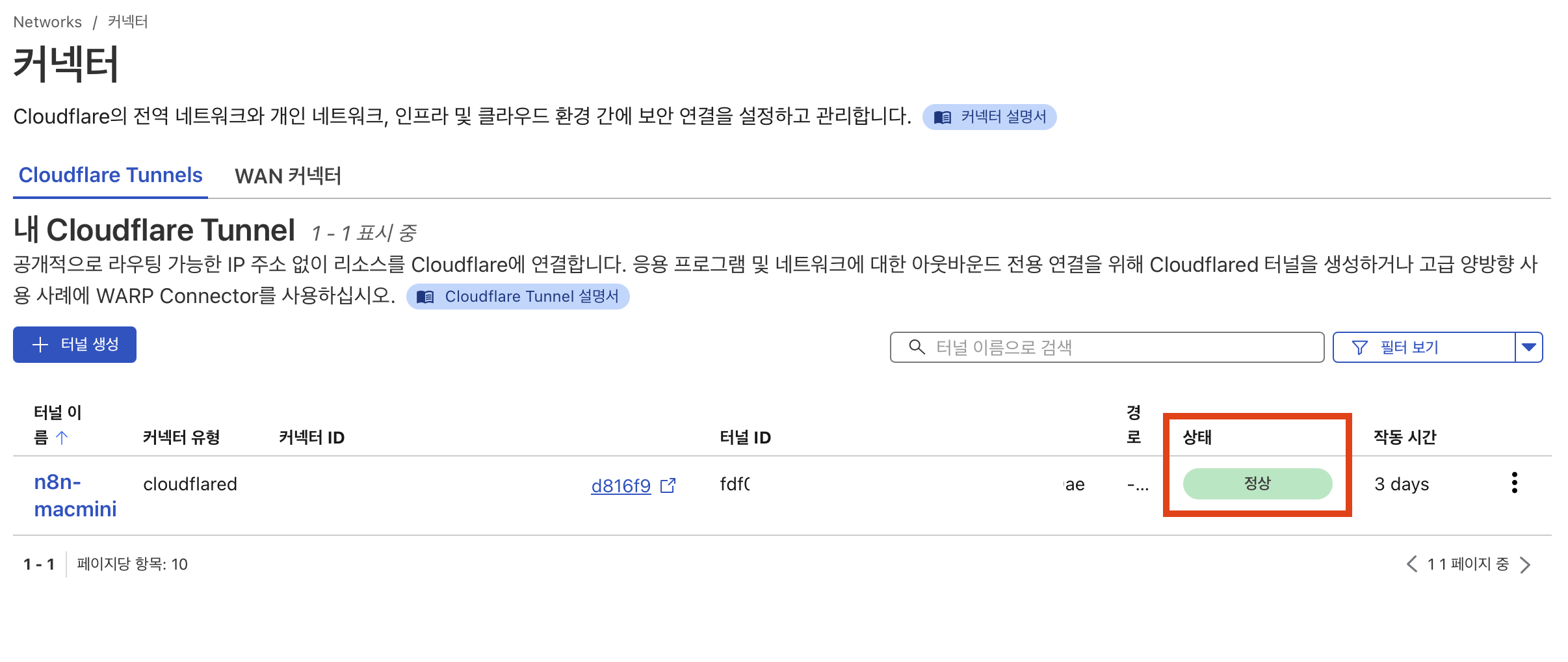 클라우드플레어에서 커넥터 상태도 '정상'으로 아무런 문제가 없어야하는데