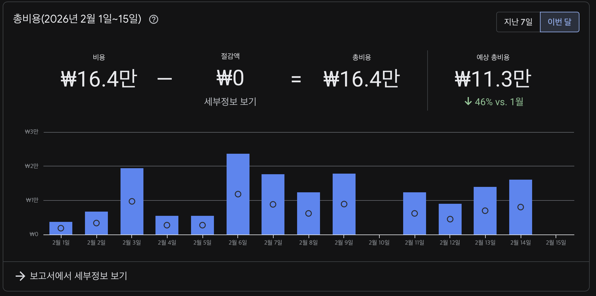 2월이 절반이 지난시점 벌써 16만원을 사용했으니까 대략 한달에 30만원 정도 소요될 것으로 예상이 된다.