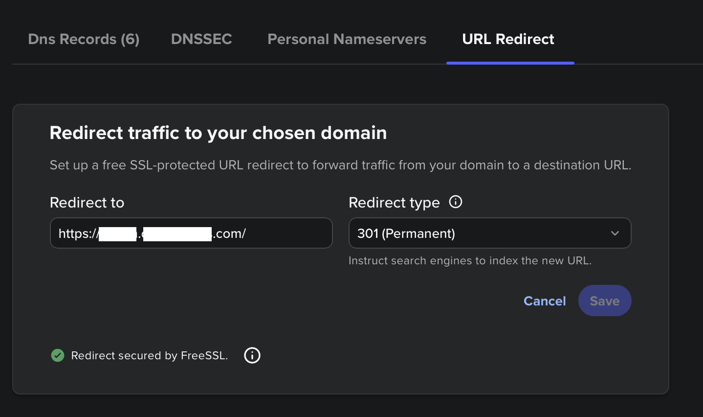 (해결방법) 도메인을 구입한 사이트에서 redirect 설정으로 해결